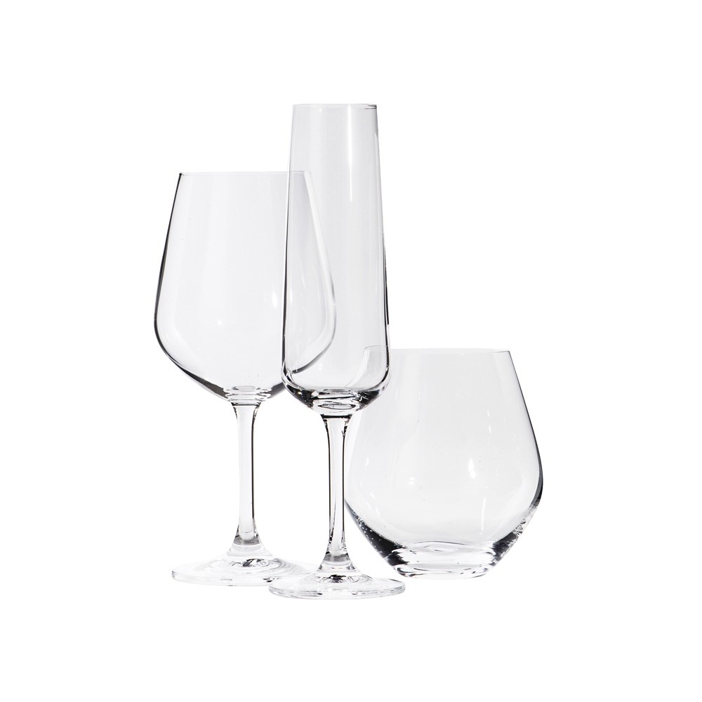 Комплектность бокал 550 мл d10 х 11,2 см- 6 шт, бокал для вина 460 мл d9 х 20 см- 6 шт, бокал для игристого 205 мл d6,5 х 23 см- 6 шт