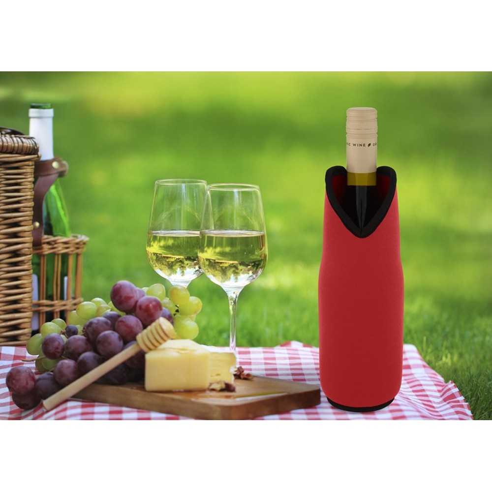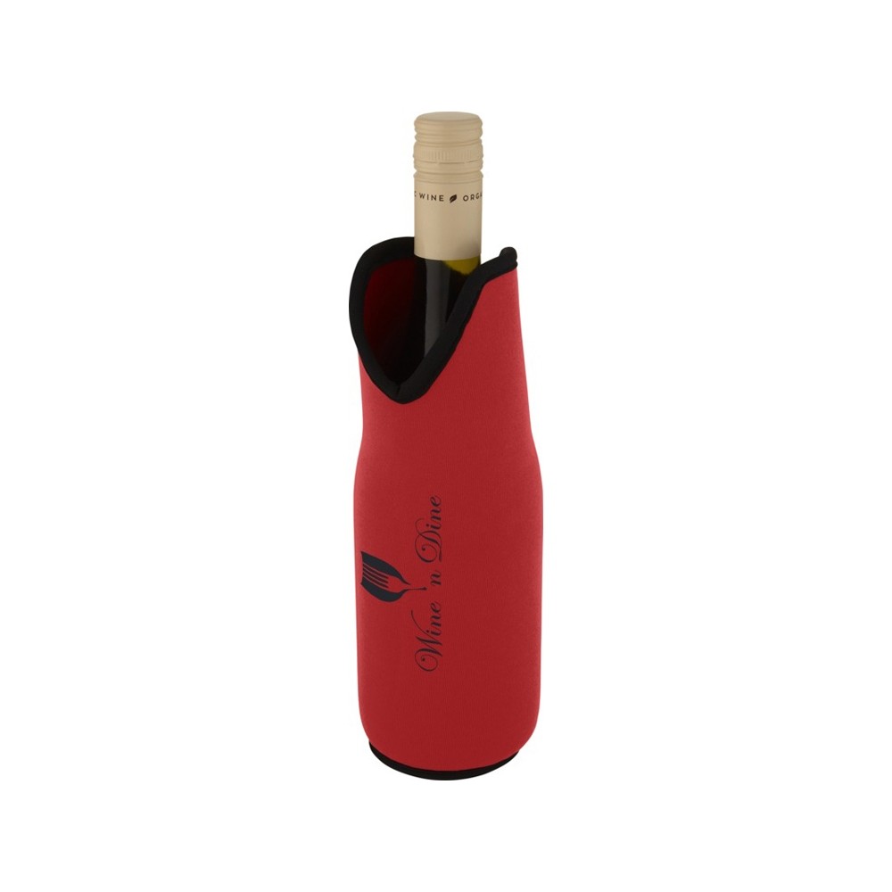 Держатель-рукав из переработанного неопрена для бутылки с вином с тонкой прострочкой и дополнительной изоляцией, которая сохраняет вино прохладным в течение длительного времени и с помощью которой держать бутылку гораздо удобнее. Держатель растягивается, поэтому подойдет под любой размер бутылки и будет плотно ее удерживать. Он также не даст бутылке разбиться во время транспортировки.