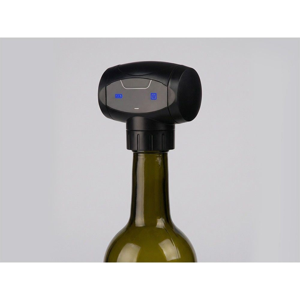 В случае, если устройство отметит, что в бутылку попал воздух уже во время хранения, она автоматически откачает его еще раз до состояния вакуума. Индикатор в виде батареи показывает уровень заряда, чтобы вы вовремя заменили батарейки. Индикатор в виде трех стрелок указывает на то, что бутылка надежно запечатана и не содержит воздуха внутри.