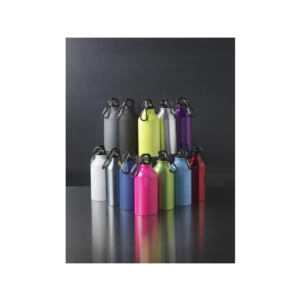 Матовая спортивная бутылка Oregon с карабином и объемом 400 мл. Бутылка с одинарными стенками со съемной крышкой. Модное матовое покрытие. Карабин не предназначен для лазанья. Объем – 400 мл. Алюминий без БФА.