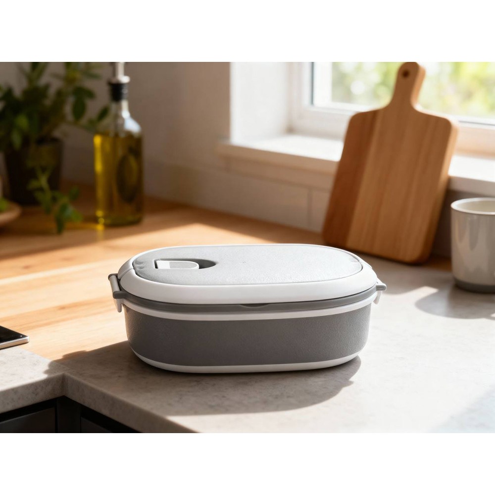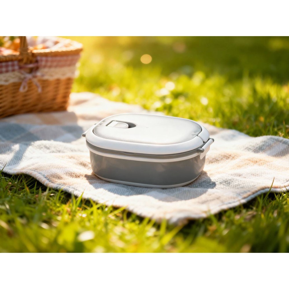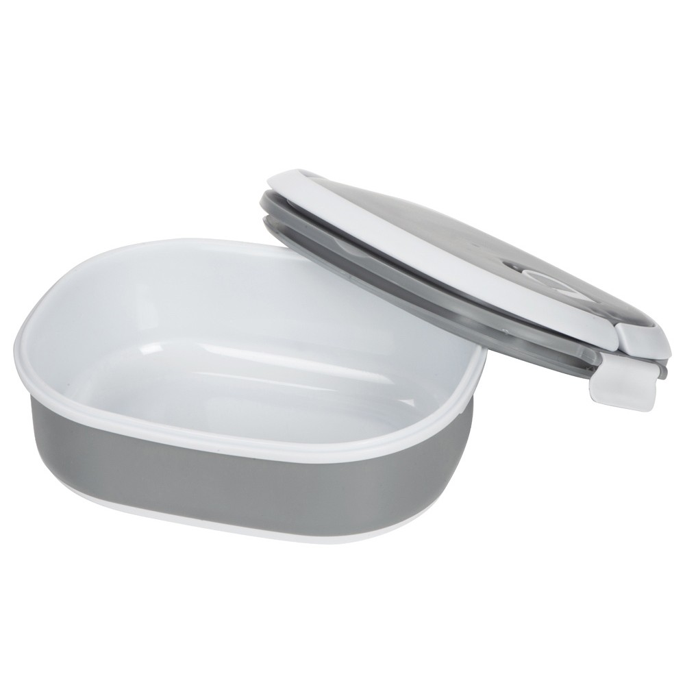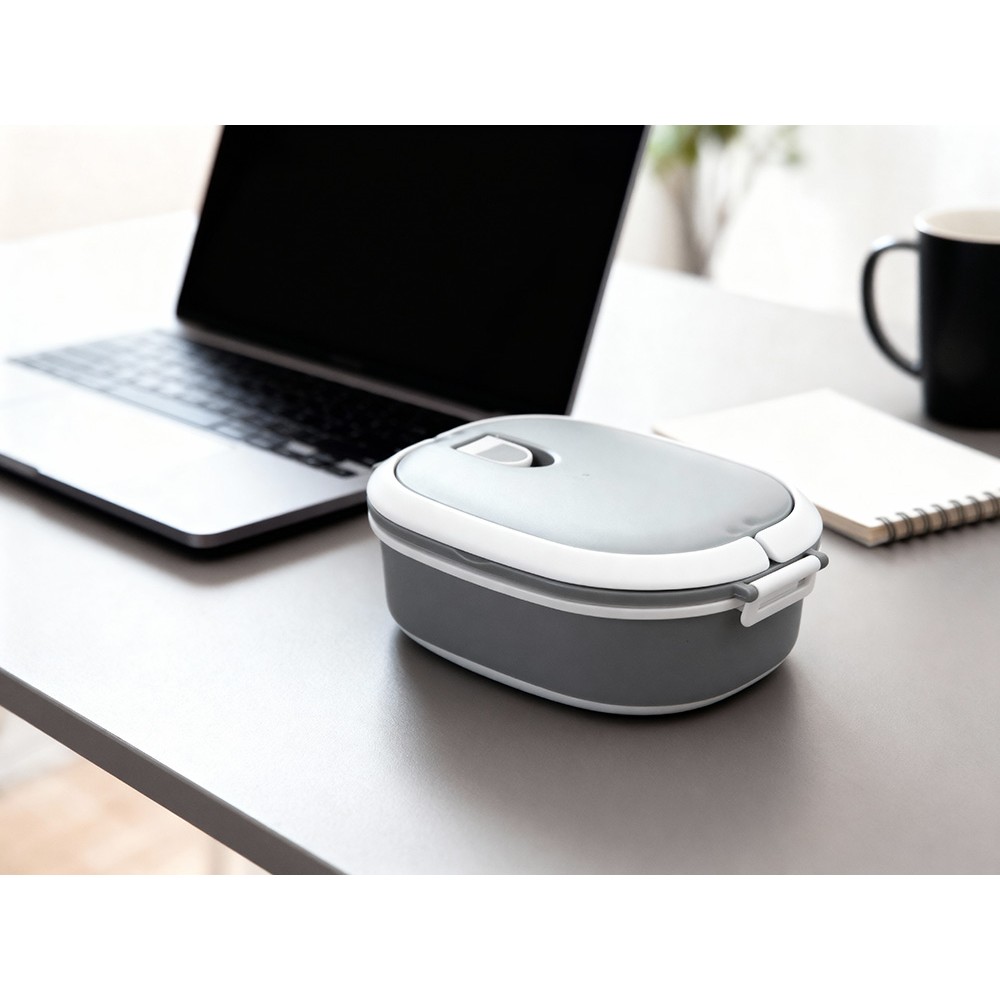 Материалы — пластик и термопластичная резина, безопасные для контакта с пищей и рассчитанные на длительное использование. Ланч-бокс плотно закрывается, что помогает избежать проливаний, однако не является полностью герметичным — идеально для твёрдых и густых блюд.