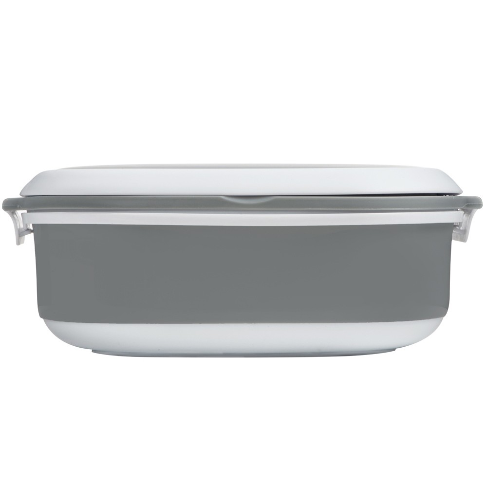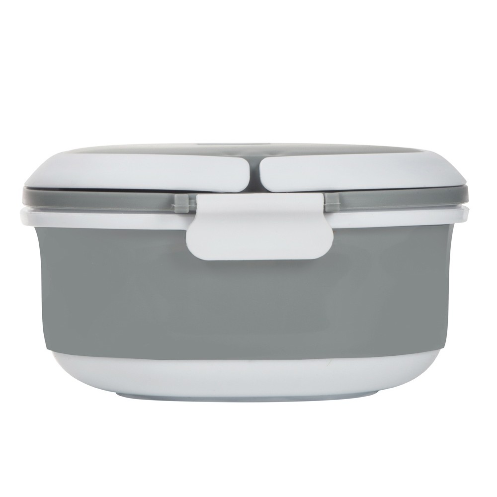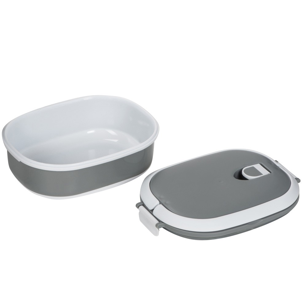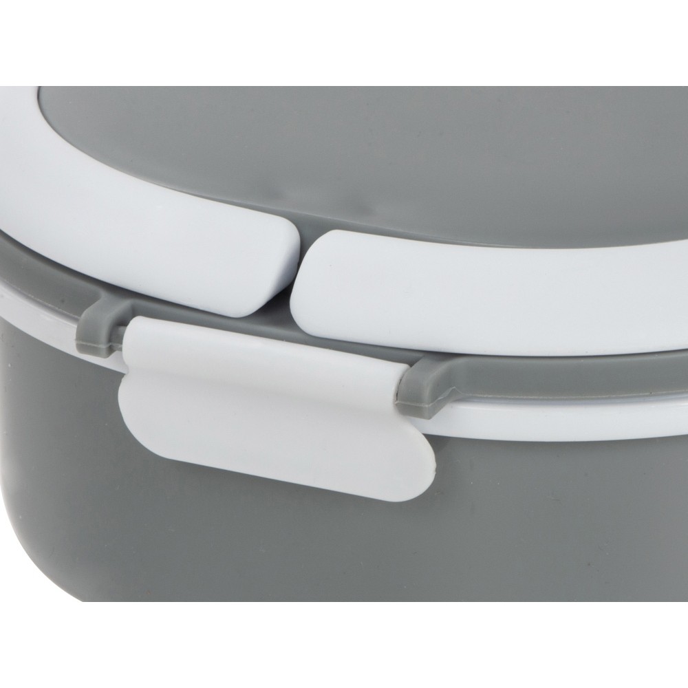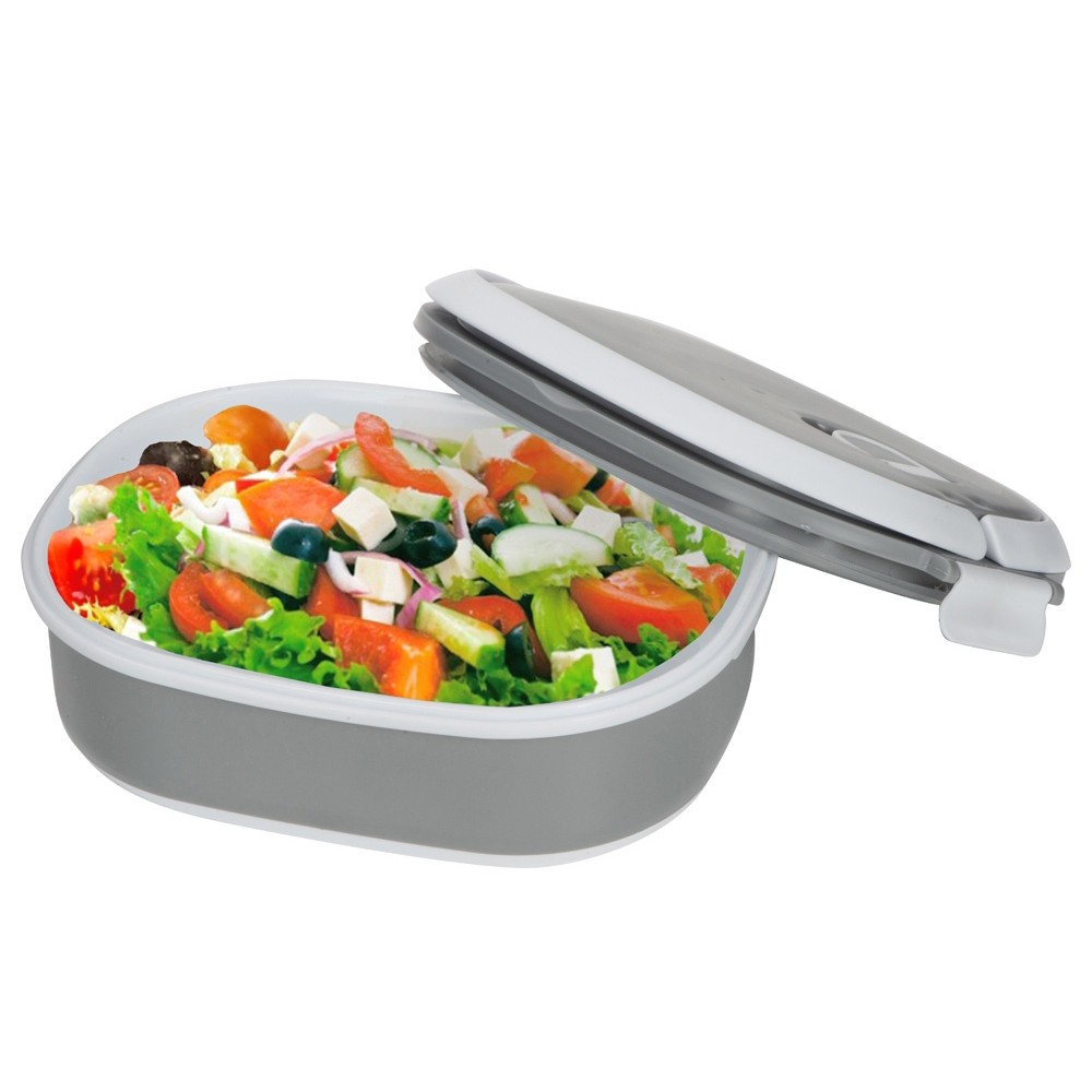 Материалы — пластик и термопластичная резина, безопасные для контакта с пищей и рассчитанные на длительное использование. Ланч-бокс плотно закрывается, что помогает избежать проливаний, однако не является полностью герметичным — идеально для твёрдых и густых блюд.