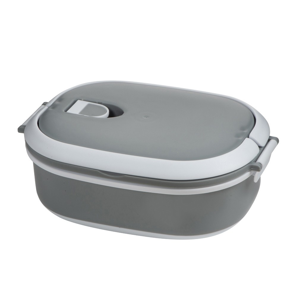 Контейнер оснащён удобными ручками и надёжными защёлками, которые обеспечивают плотное закрытие. Крышка дополнена специальным клапаном для выхода пара — удобно при разогреве в микроволновке.