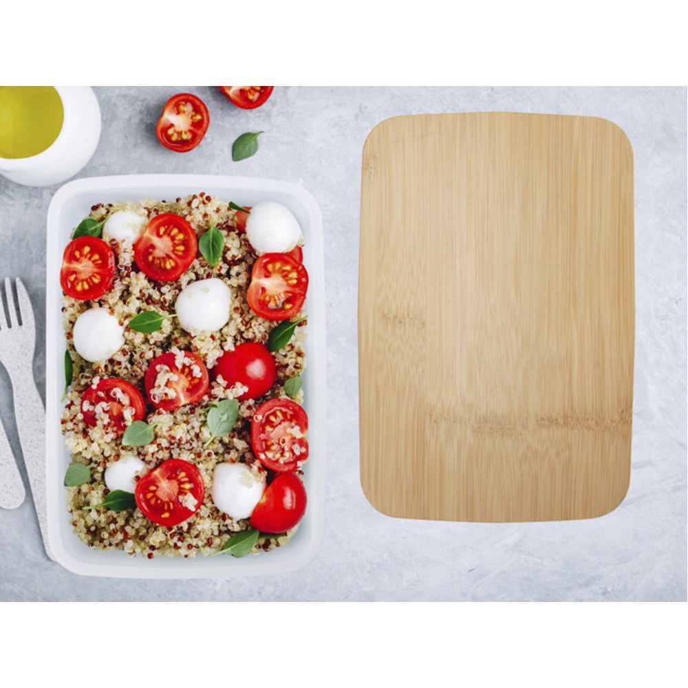 Пищевой контейнер Mangi изготовлен из переработанного пластика и имеет емкость 750 мл. Он оснащен бамбуковой крышкой и эластичной лентой, которая удерживает крышку на месте, гарантируя, что содержимое останется свежим. GRS certified recycled plastic, FSC certified bamboo.