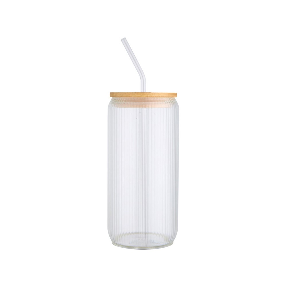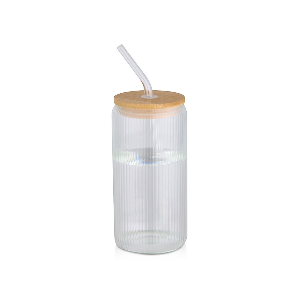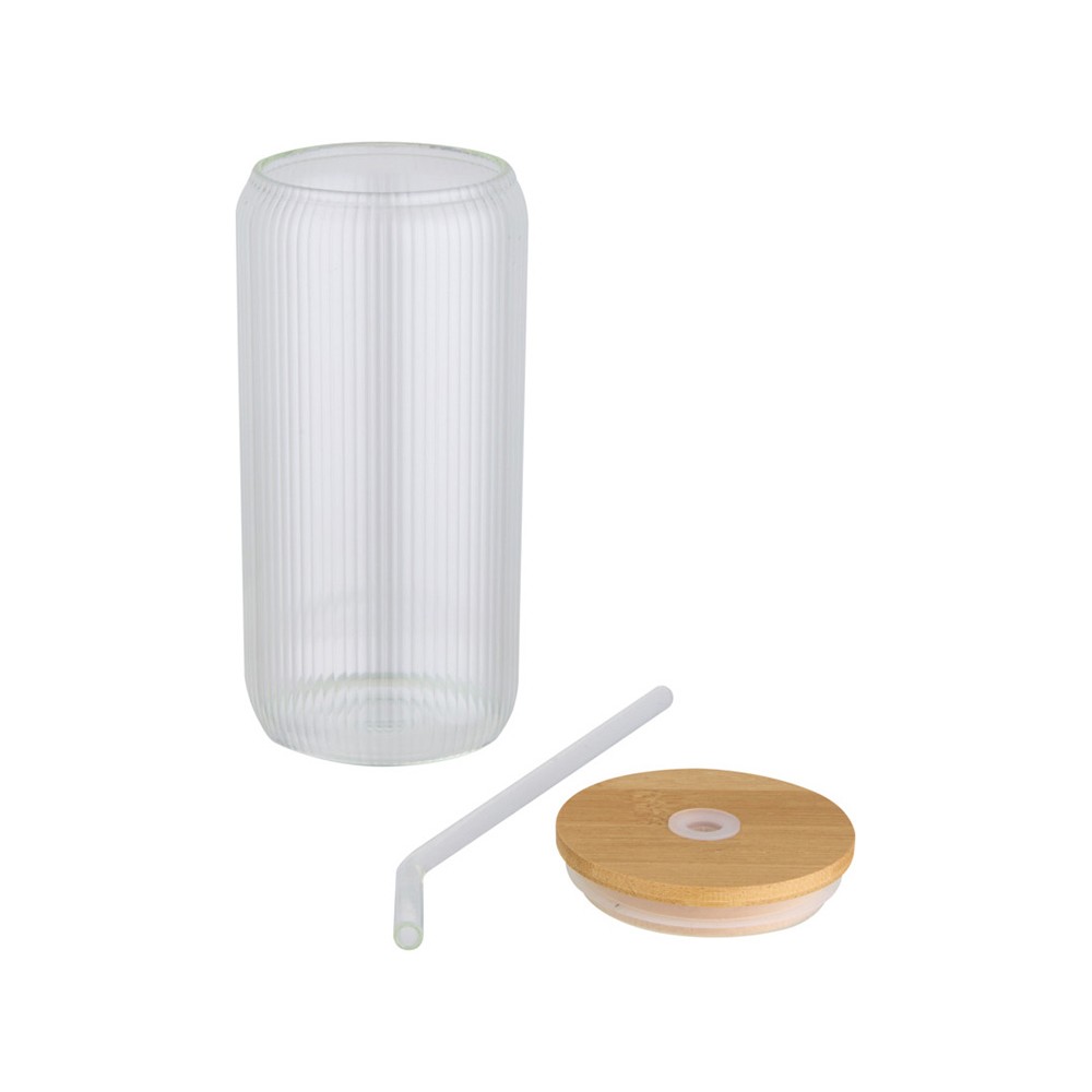 Банка из боросиликатного стекла со стеклянной трубочкой и бамбуковой крышкой. Банка имеет уникальный ребристый дизайн внутри и гладкую внешнюю поверхность, идеально подходящую для печати логотипа. Используемый бамбук выращивается в экологически чистых условиях с соблюдением принципов экологической и социальной ответственности. Поставляется в подарочной коробке из переработанного картона. Объем: 650 мл. 90% Боросиликатное стекло, 10% Бамбук с сертификатом FSC. упаковка FSC Mix 100% P5 CU-COC-877277. FSC Mix Credit N5 CU-COC-877277.