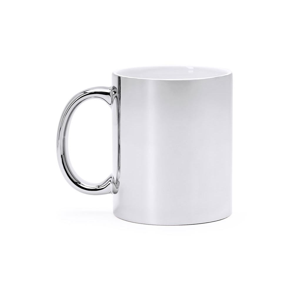 Керамическая кружка объемом 350 мл с глянцевым покрытием. Специально для лазерной гравировки. Доступна в серебряном и золотом цвете.