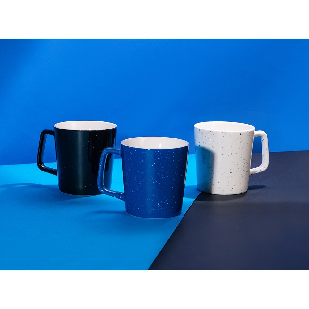 «Oreo» — очаровательная кружка конусовидной формы, внутренняя часть которой выкрашена в белый цвет, благодаря чему можно рассмотреть содержимое, любуясь танцем чаинок. Материал — костяной фарфор, легкий и тонкий. Паттерн в виде брызг выделяет «Oreo» из ряда других моделей, делая ее интереснее и уютнее, добавляя нотку небрежного шарма.