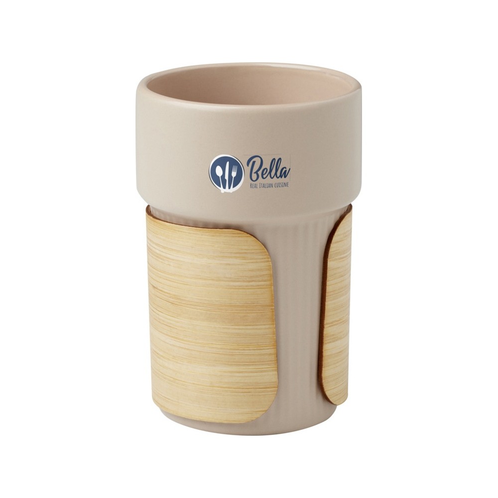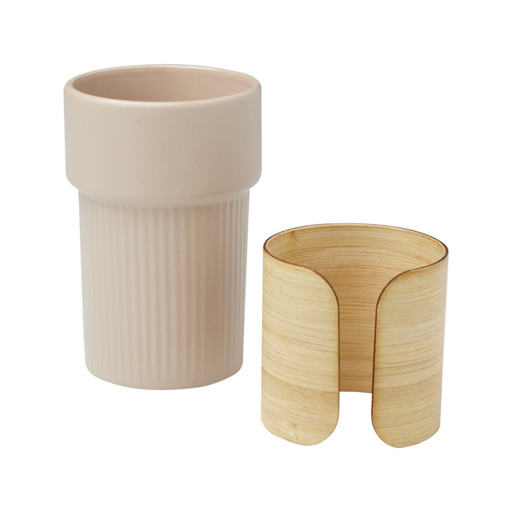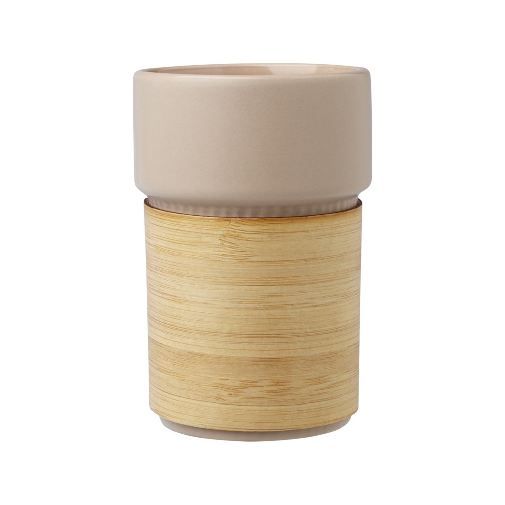 Стильный керамический стакан Fika поставляется со съемным бамбуковым чехлом, который идеально подходит для питья горячих напитков. Используемый бамбук поступает из устойчивых, экологически чистых и социально ответственных источников. Объем: 340 мл. Поставляется в коробке из переработанного картона. 94% Stoneware.