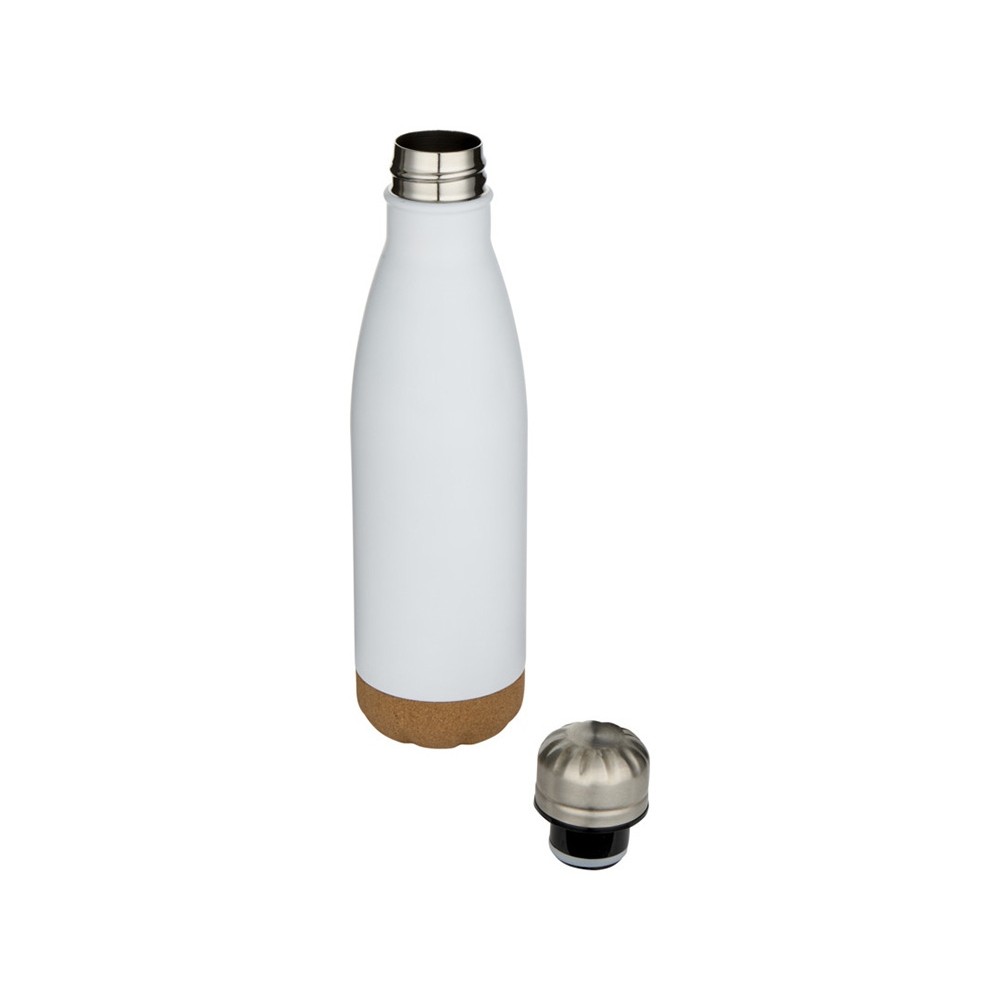 • Бутылка для воды Cove из нержавеющей стали с двойными стенками и вакуумной изоляцией, объемом 500 мл, с пробковыми деталями - Белый