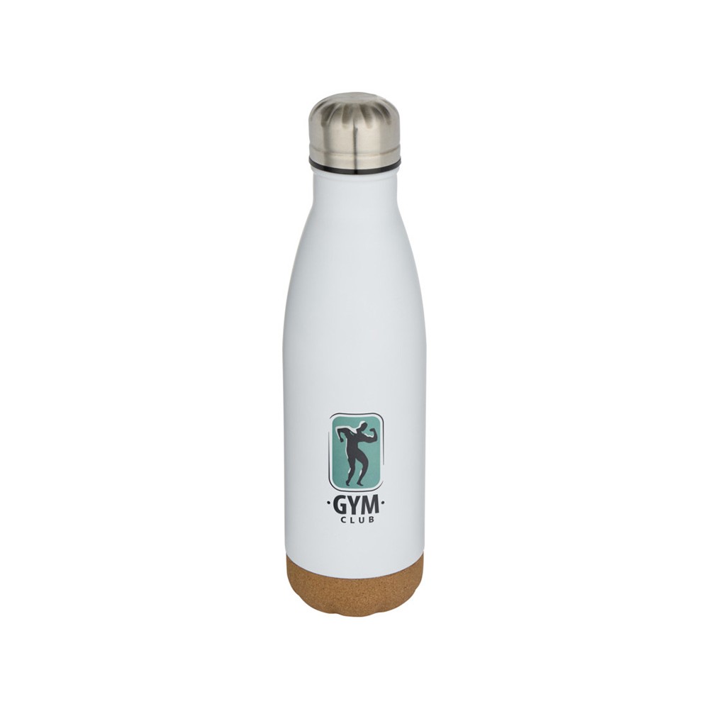 Бутылка для воды из нержавеющей стали с вакуумной изоляцией и пробковыми деталями в нижней части. Двойная изоляция стенок сохраняет напитки горячими или холодными в течение нескольких часов. Поставляется в подарочной коробке из переработанного картона. Объем: 500 мл. 90% нержавеющая сталь, 10% Пробка. упаковка FSC Mix Credit P5.1 CU-COC-877277.