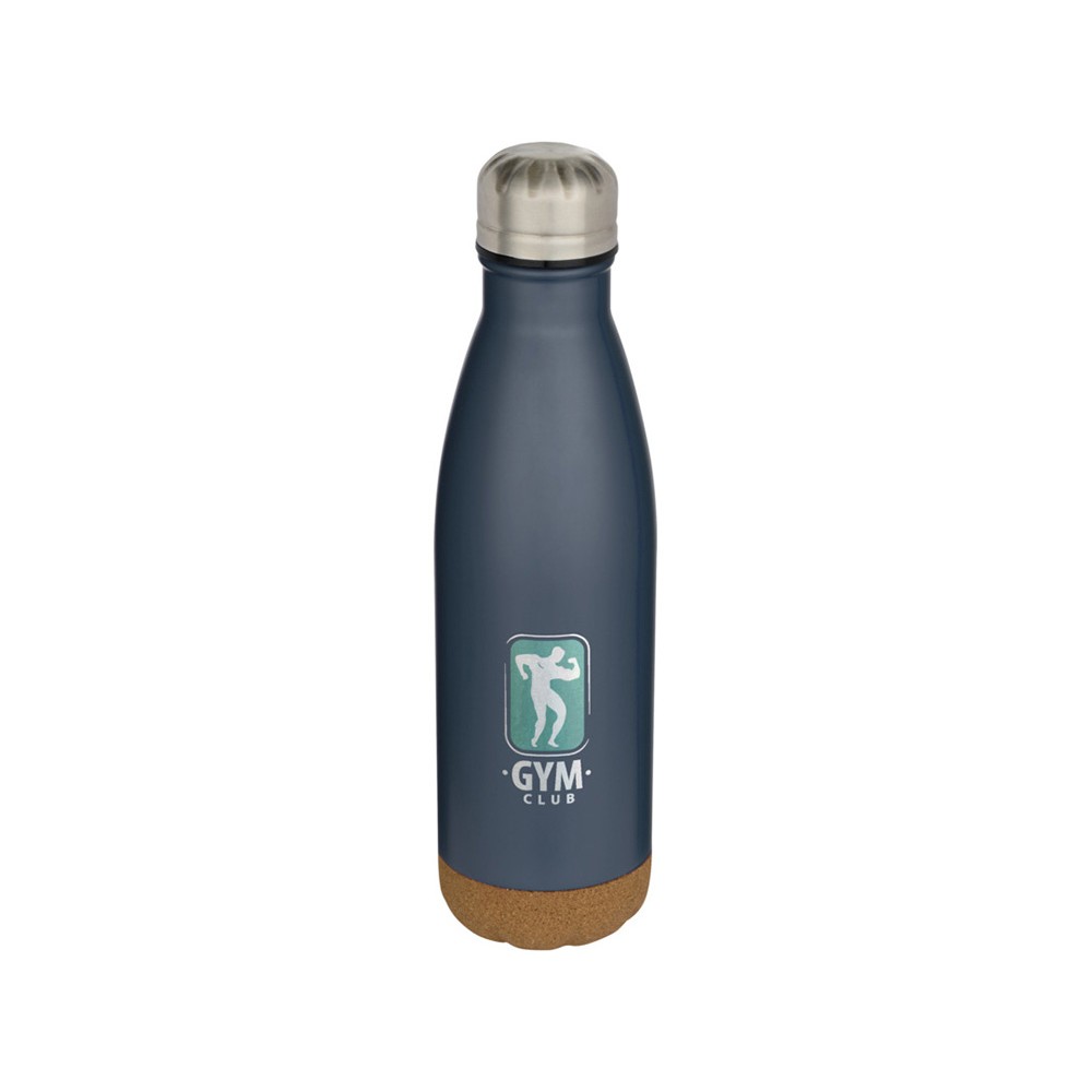 Бутылка для воды из нержавеющей стали с вакуумной изоляцией и пробковыми деталями в нижней части. Двойная изоляция стенок сохраняет напитки горячими или холодными в течение нескольких часов. Поставляется в подарочной коробке из переработанного картона. Объем: 500 мл. 90% нержавеющая сталь, 10% Пробка. упаковка FSC Mix Credit P5.1 CU-COC-877277.