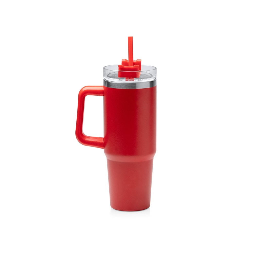 Двухстеночная термокружка из переработанной нержавеющей стали 304. Крышка с трубочкой и винтовой системой закрытия. Объём: 850 мл. Поставляется в дизайнерской коробке.
