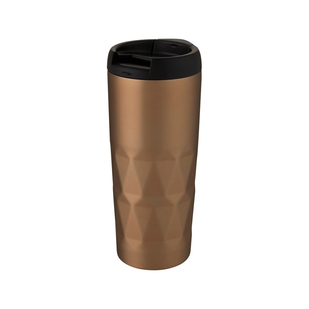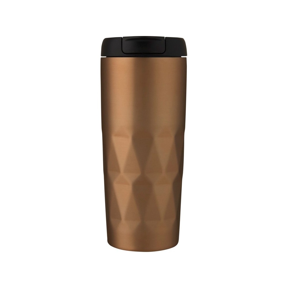 Медная кружка с двойными стенками, вакуумной изоляцией и навинчивающейся крышкой с защитой от проливания со сложным геометрическим дизайном. Благодаря изоляции и нержавеющей стали 18/8 напитки несколько часов остаются горячими или холодными. Без содержания BPA, протестировано и одобрено согласно немецкому законодательству о безопасности пищевых продуктов (LFGB), проверено на содержание фталатов согласно нормам REACH. Объем 450 мл. Рекомендуется мыть вручную. В коробке из переработанного картона.