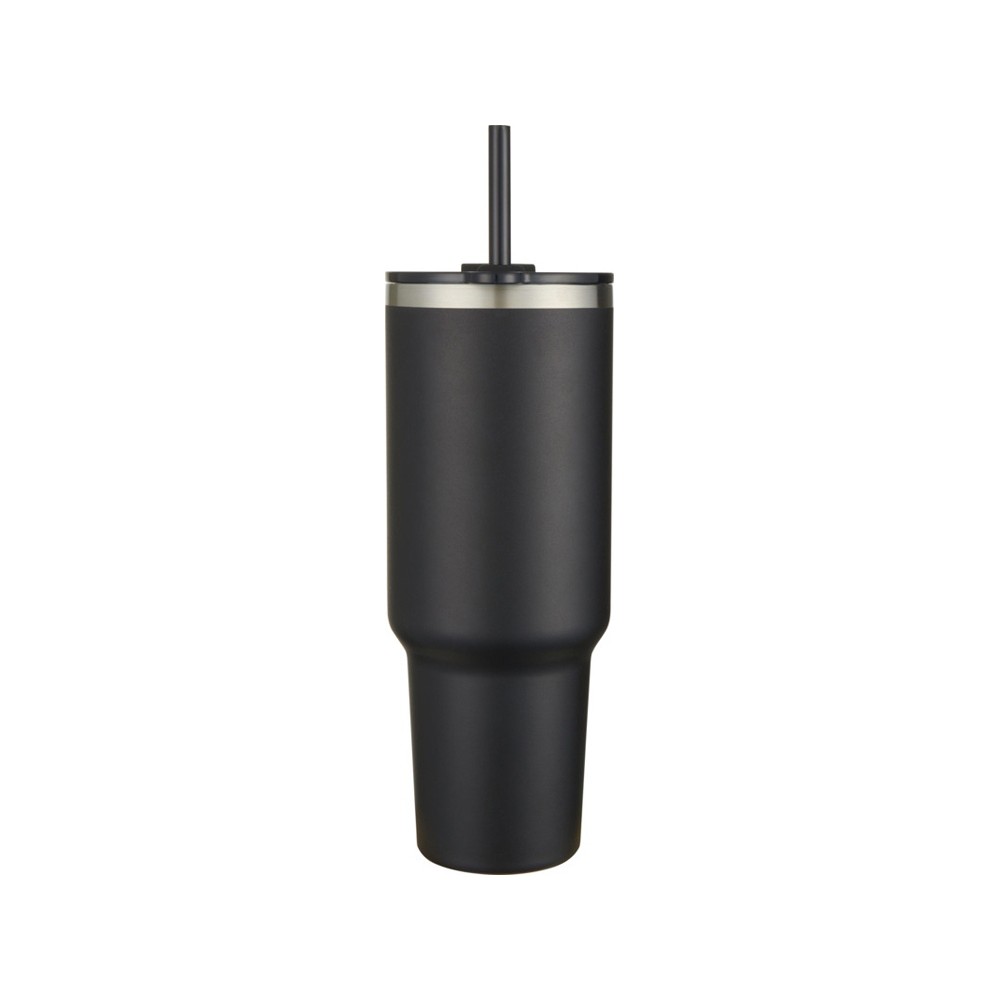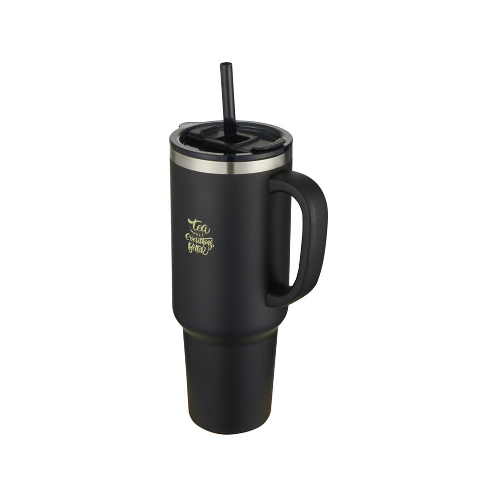 Sydney медная кружка с двойными стенками, сертифицированная согласно RCS, с вакуумной изоляцией и соломинкой, 1200 мл - сплошной черный