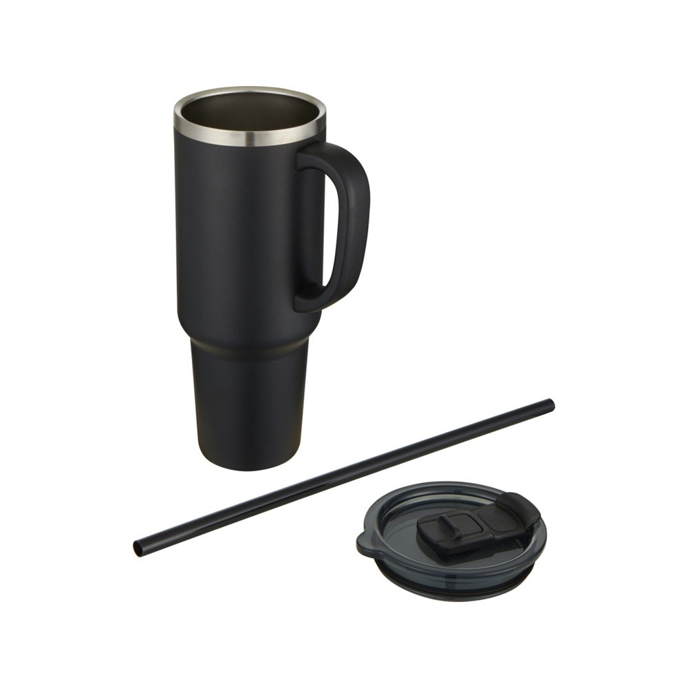 • Sydney медная кружка с двойными стенками, сертифицированная согласно RCS, с вакуумной изоляцией и соломинкой, 1200 мл - сплошной черный