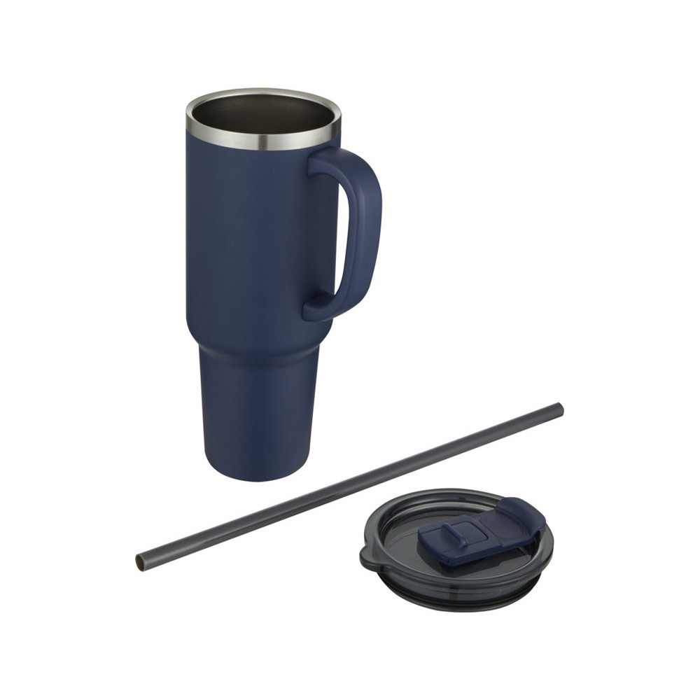 Sydney медная кружка с двойными стенками, сертифицированная согласно RCS, с вакуумной изоляцией и соломинкой, 1200 мл - Темно - синий