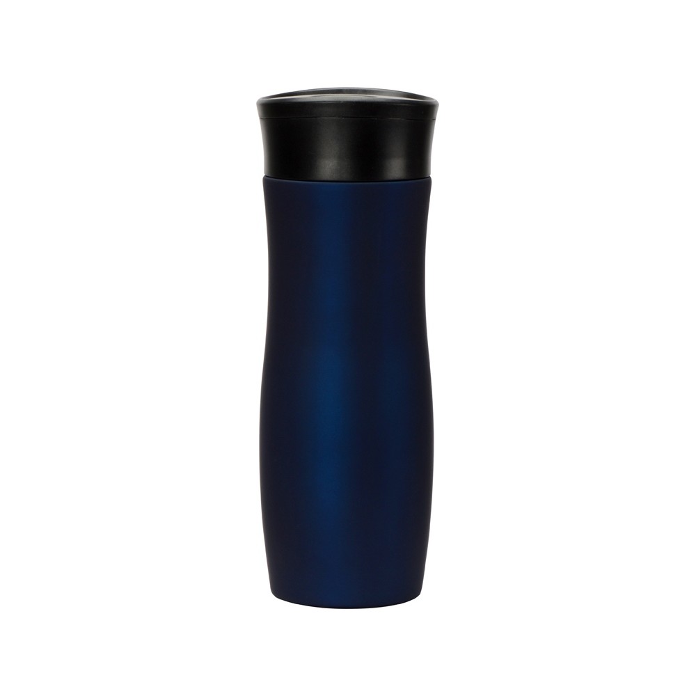 • Вакуумная термокружка с кнопкой Streamline, Waterline, soft-touch, тубус, темно-синий