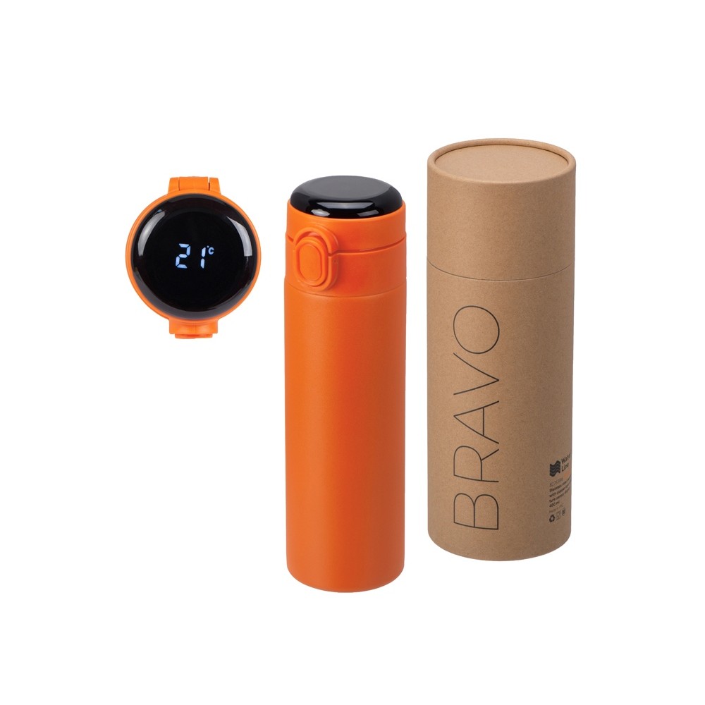 Вакуумная термокружка с медной изоляцией между стенками, которая точно не даст вам обжечься: сенсорный индикатор температуры сообщает о температуре напитка, выводя на дисплей информацию в градусах Цельсия. Что немаловажно, сенсор работает от сменной батарейки, что существенно продлит срок службы Bravo, позволяя не расставаться с полюбившейся термокружкой.