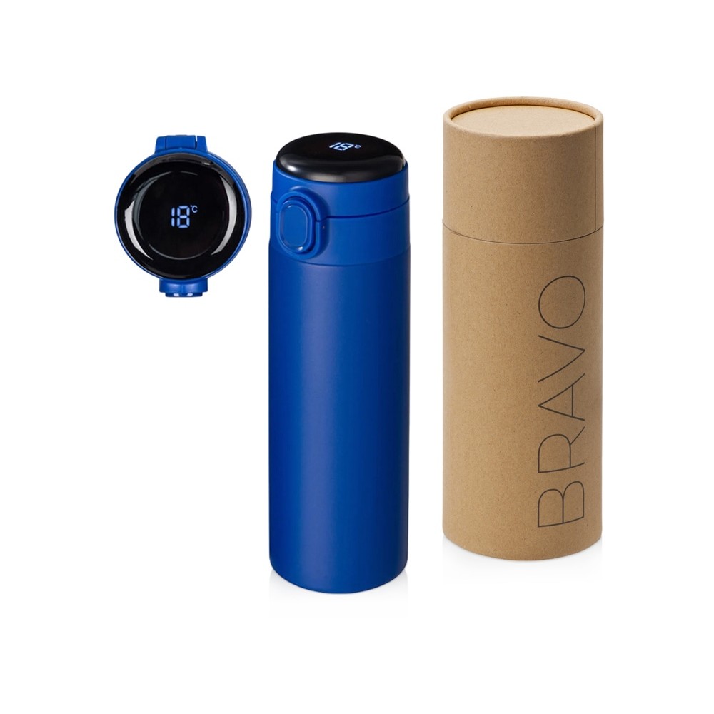 Вакуумная термокружка с медной изоляцией между стенками, которая точно не даст вам обжечься: сенсорный индикатор температуры сообщает о температуре напитка, выводя на дисплей информацию в градусах Цельсия. Что немаловажно, сенсор работает от сменной батарейки, что существенно продлит срок службы Bravo, позволяя не расставаться с полюбившейся термокружкой.