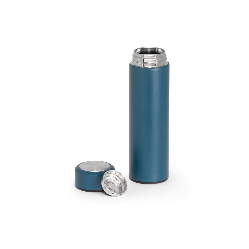 Термос из нержавеющей стали с двойным корпусом и ситечком для заваривания чая. Емкость до 470 мл. Поставляется в подарочной упаковке. Вид нанесения, рекомендуемый поставщиком: гравировка, трафаретная печать
