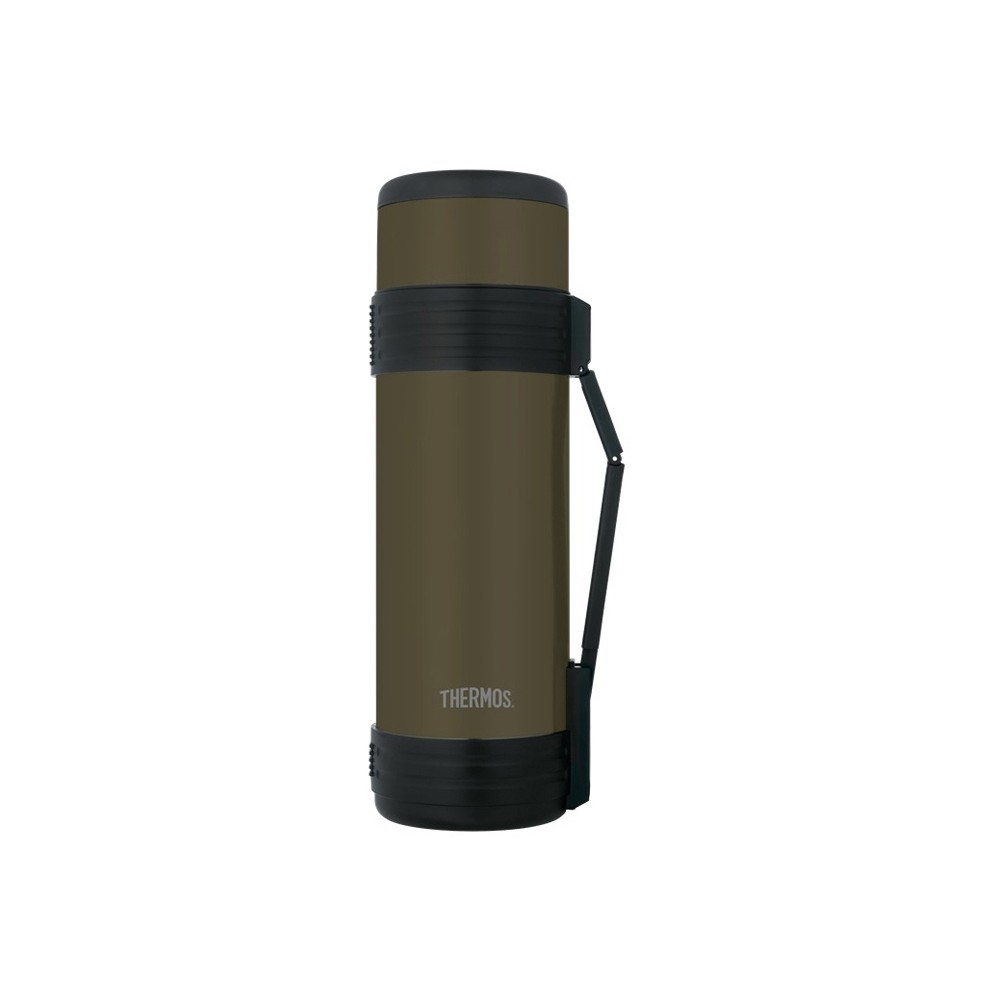 Термос укомплектован крышкой-чашкой объёмом 420 мл. Комфорт в транспортировке и эксплуатации обеспечивают также складная ручка, съёмный плечевой ремень и специальные стопперы на корпусе для устойчивости термоса в горизонтальном положении. Уникальное износостойкое покрытие цвета хаки надолго сохранит первоначальный вид изделия.