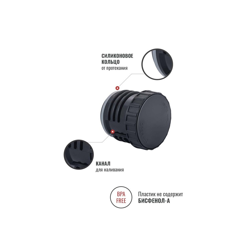 Надежная закручивающаяся пробка с силиконовым кольцом защищает от протекания и помогает удерживать температура.