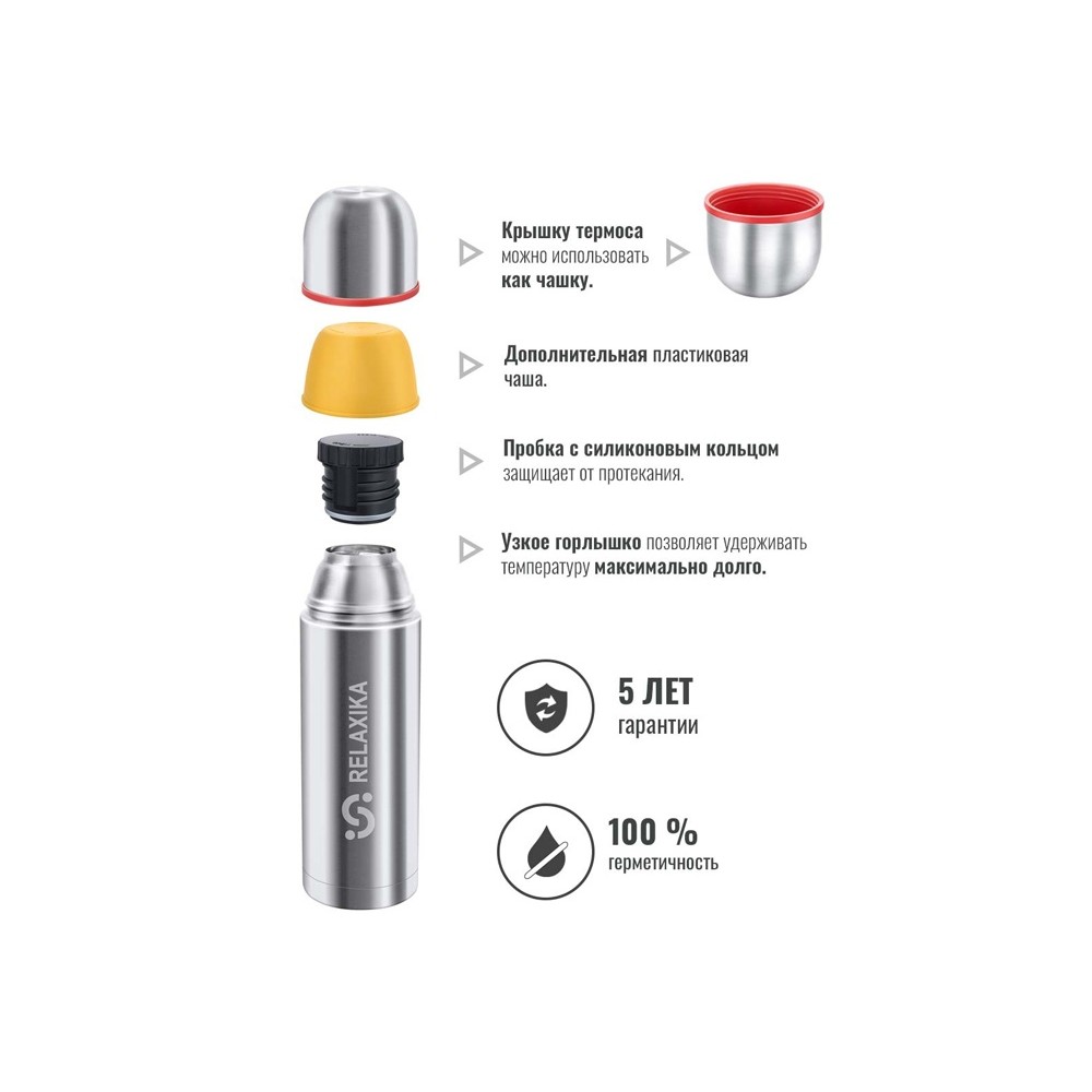 Технические характеристики Термос Relaxika 102, 2 чашки, 1000 мл, стальной