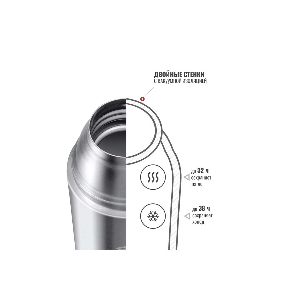 Классический термос Relaxika с двумя чашками и высокими показателями удержания температуры напитка для походов, путешествий, спорта и ежедневного использования. Прочные двойные стенки из высококачественной нержавеющей стали 18/8 с вакуумной изоляцией гарантируют, что ваш напиток останется холодным в течение 38 часов и горячим до 32 часов. Этот материал не только прочен, но и гигиеничен, не выделяет никаких вредных для здоровья веществ. Ваши напитки сохраняет естественный вкус и не приобретут посторонний запах. Напиток остается холодным до 38 часов и горячим до 32 часов 2 чашки.