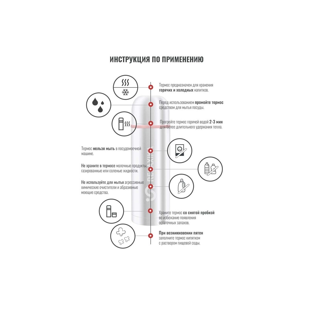 BPA Free. В пластмассах, используемых для производства термосов, отсутствует Бисфенол А – BPA признанный в мире вредным для здоровья человека.