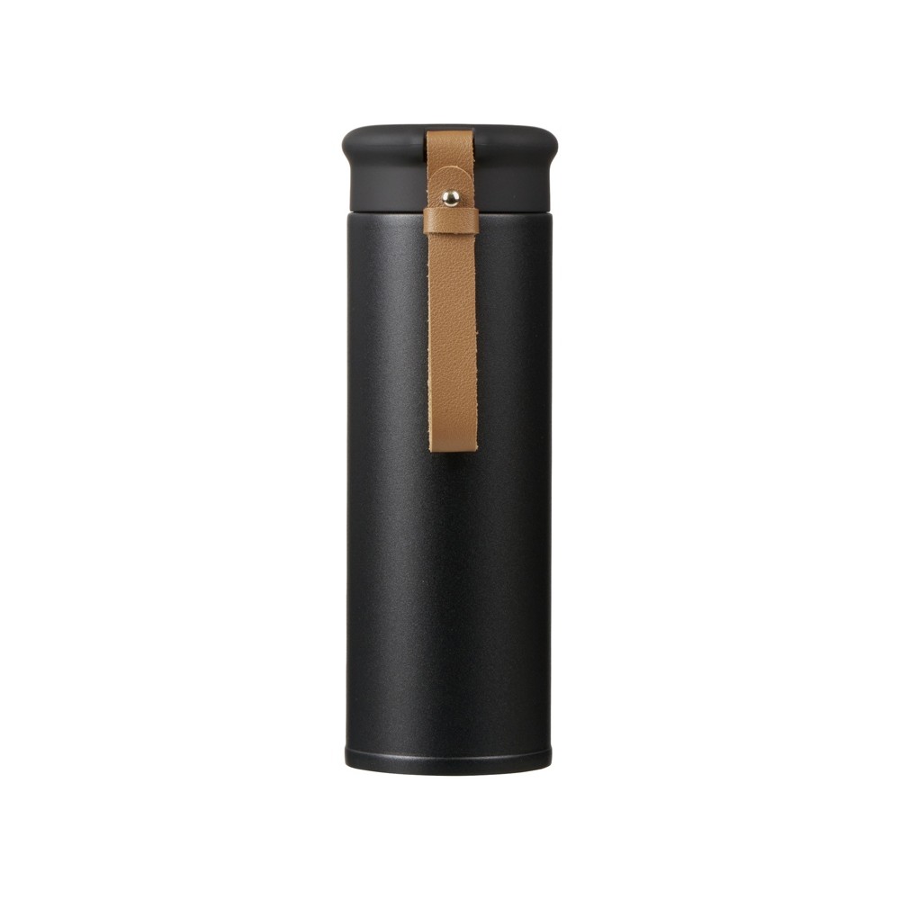 Термос герметично завинчивается на крышку, оснащенную съемным ремешком из качественной ПУ кожи. Крышка имеет прорезиненное покрытие, что создает интересное сочетание текстур в рамках одной модели. Корпус имеет элегантную рельефную поверхность с антискользящим эффектом.