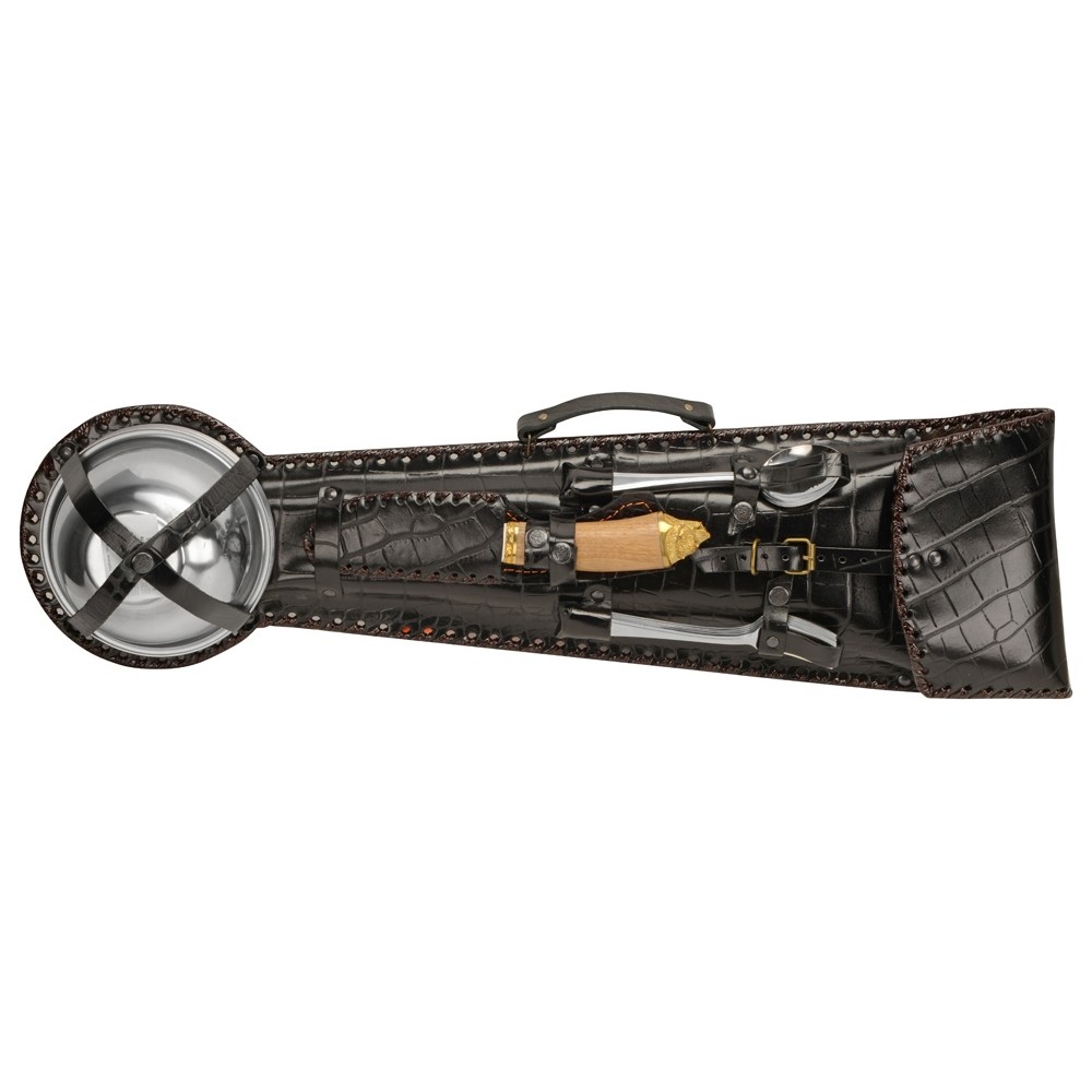 Набор для пикника в кожаном чехле ручной работы.