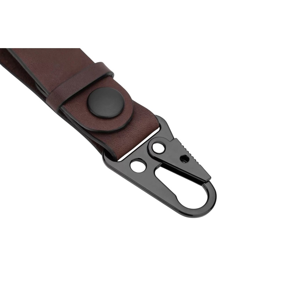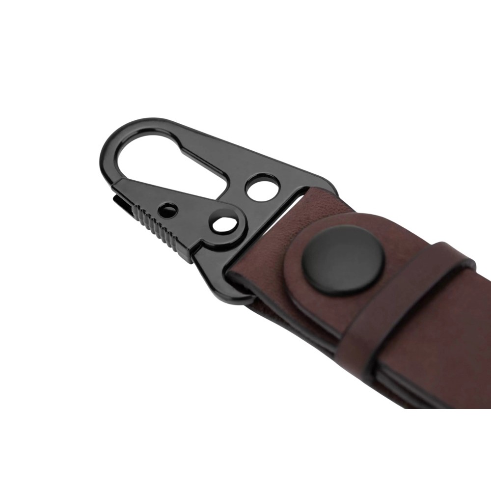 Ремешок сшит из прочной кожи коричневого цвета. Оборудован надёжным металлическим карабином, самопроизвольное расцепление которого невозможно. Ключи, прицепленные к нему, обречены вечно храниться в глубинах сумки или кармана джинсов, и у них нет ни единого шанса потеряться. Прицепить ремешок можно к шлёвке джинсов или к куртке.
