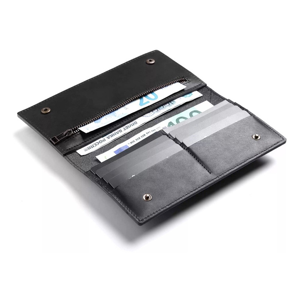 В меру строгий и универсальный, этот кошелек будет верным решением для людей, привыкших носить всё своё при себе.