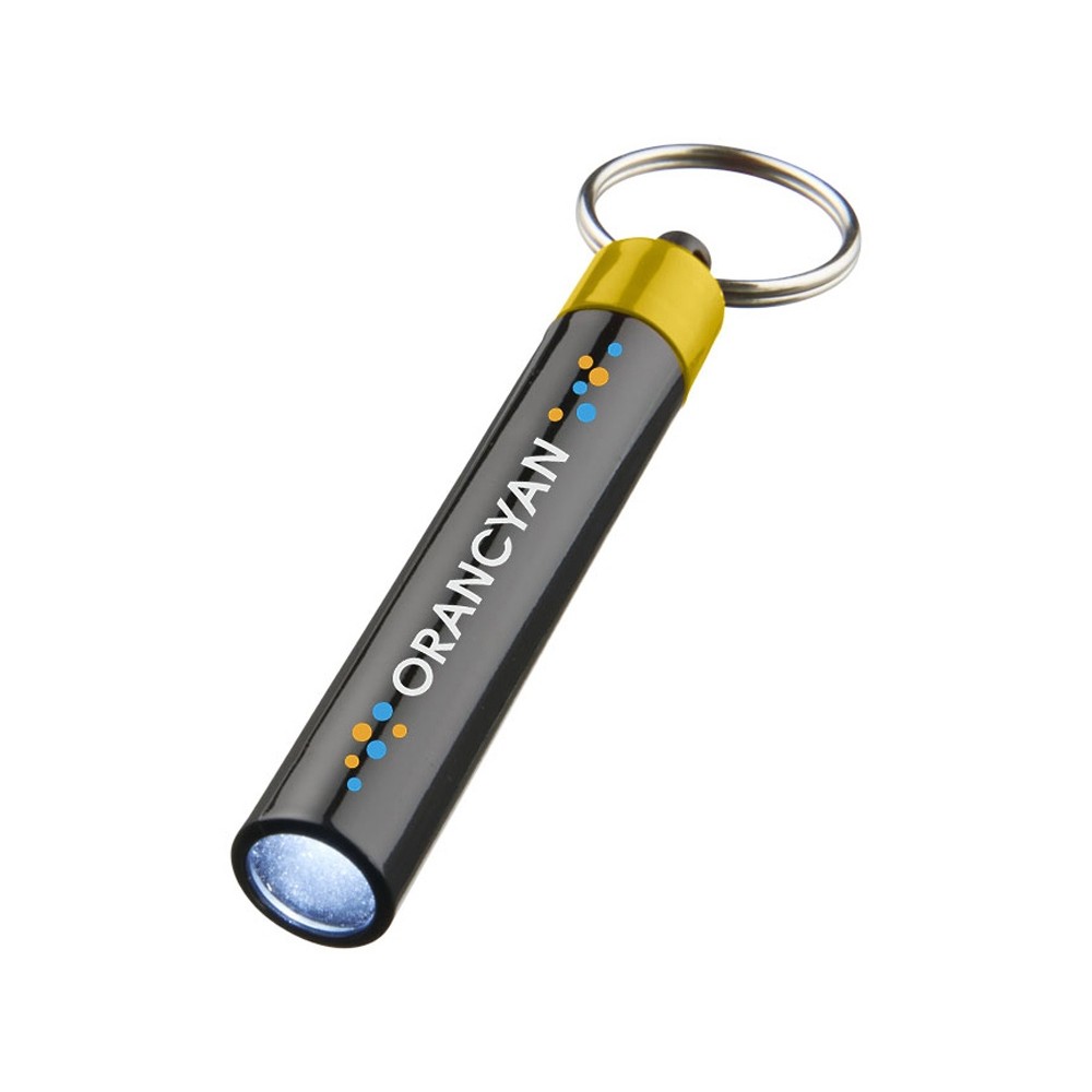 Брелок-фонарик Retro. Покрытие УФ, фонарик с одним диодом с нажимной кнопкой вкл/выкл. Металлическое колечко. Батарейки в комплекте. АБС пластик.
