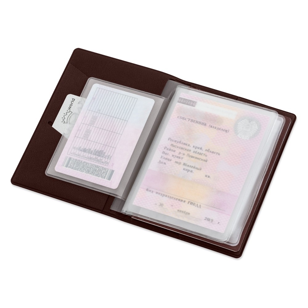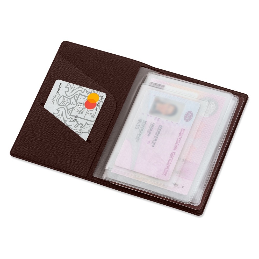 Внутренние вкладыши выполнены из пленки пвх и позволяют разместить: паспорт, свидетельство о регистрации тс, полис осаго, водительское удостоверение, также имеется кармашек для пластиковой карты.