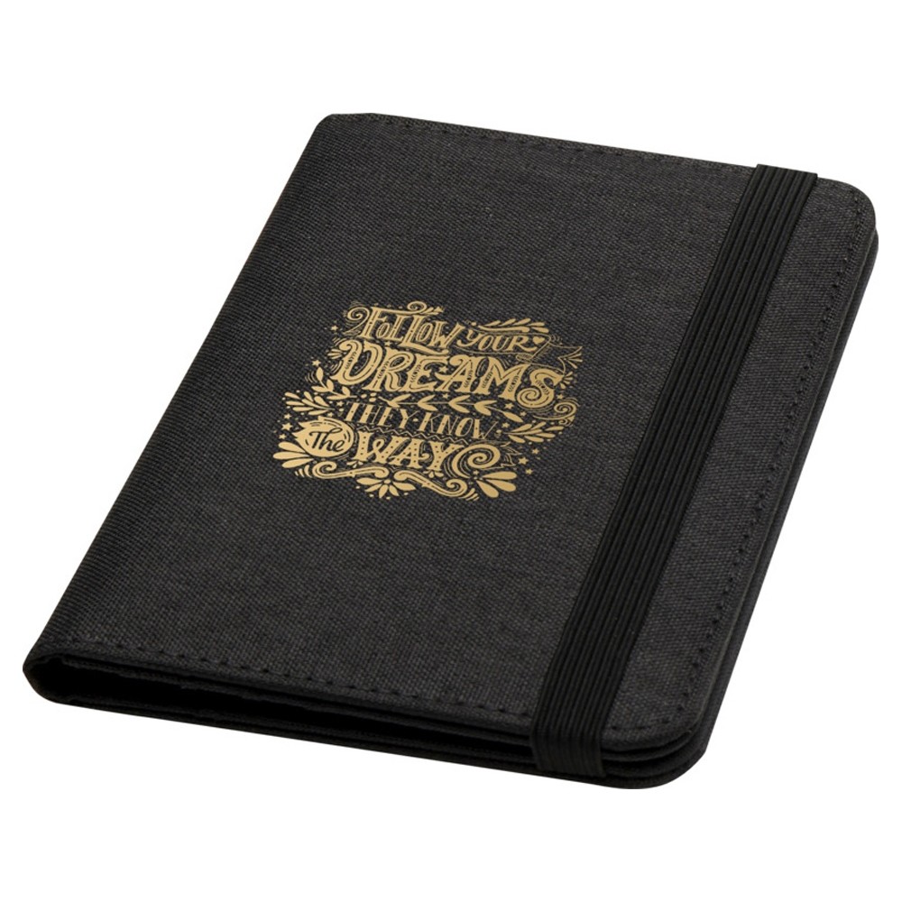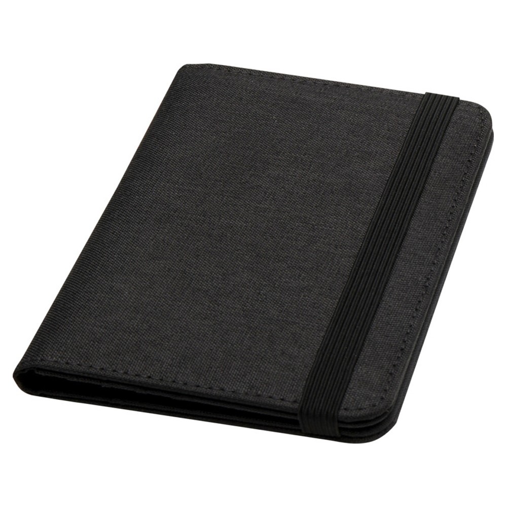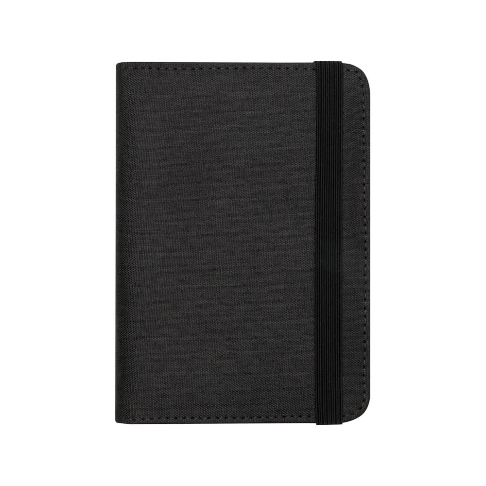 RFID-держатель для паспорта Ross изготовлен из переработанного полиэстера и идеально подходит для людей, постоянно находящихся в пути, благодаря специальным карманам для паспорта, билетов, кредитных карт и других предметов. Поставляется с эластичной застежкой, обеспечивающей сохранность содержимого. 300DGRS certified recycled polyester.