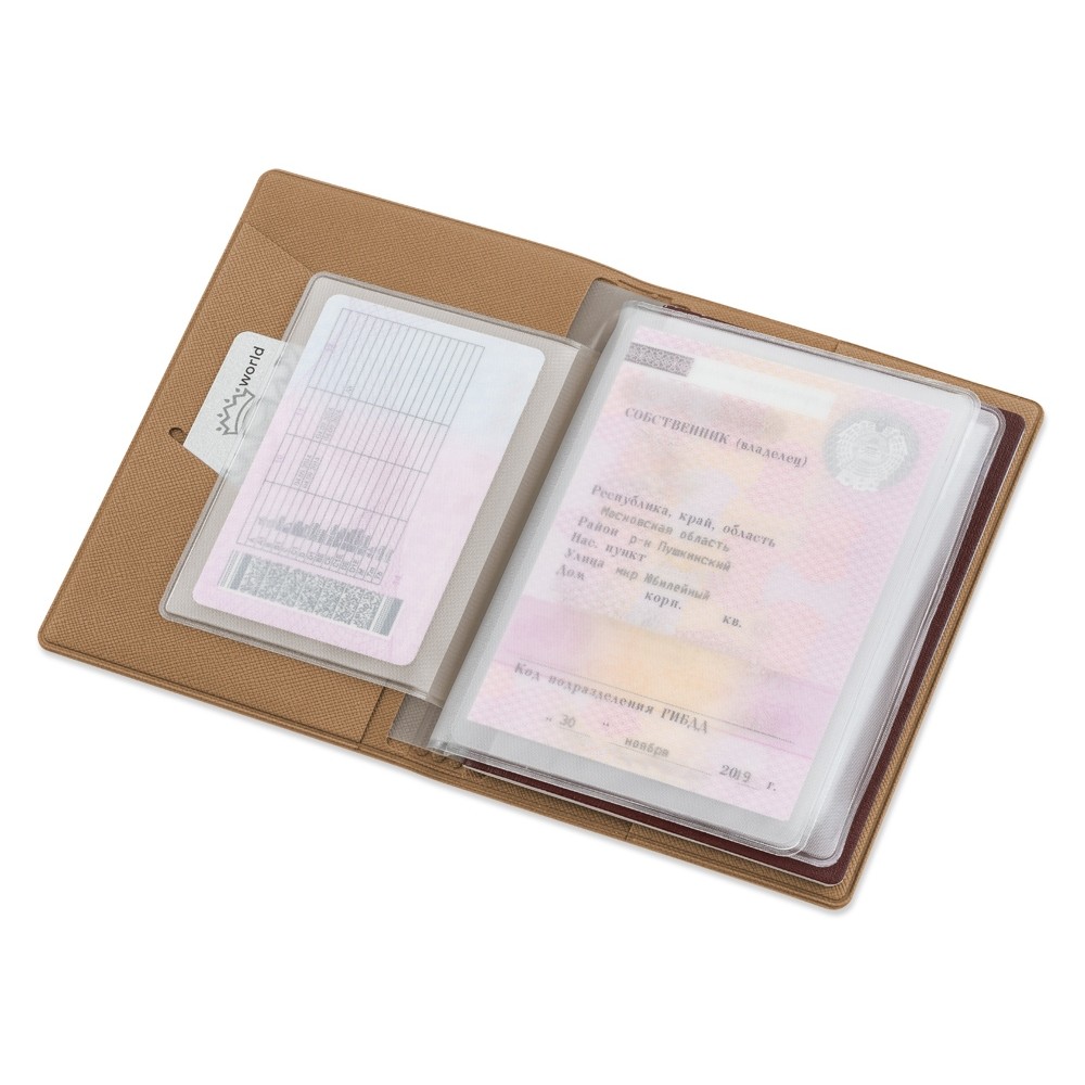 Внутренние вкладыши выполнены из пленки пвх и позволяют разместить: паспорт, свидетельство о регистрации тс, полис осаго, водительское удостоверение, также имеется кармашек для пластиковой карты.