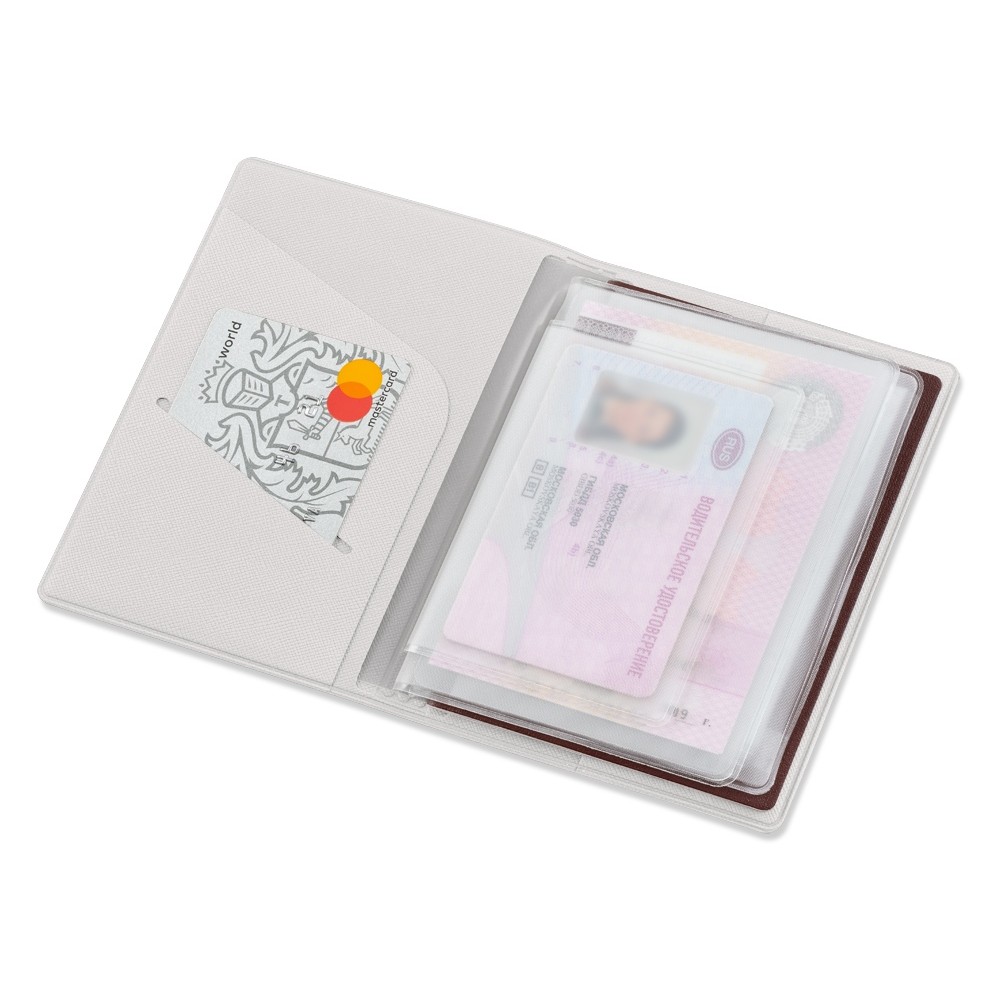 Внутренние вкладыши выполнены из пленки пвх и позволяют разместить: паспорт, свидетельство о регистрации тс, полис осаго, водительское удостоверение, также имеется кармашек для пластиковой карты.