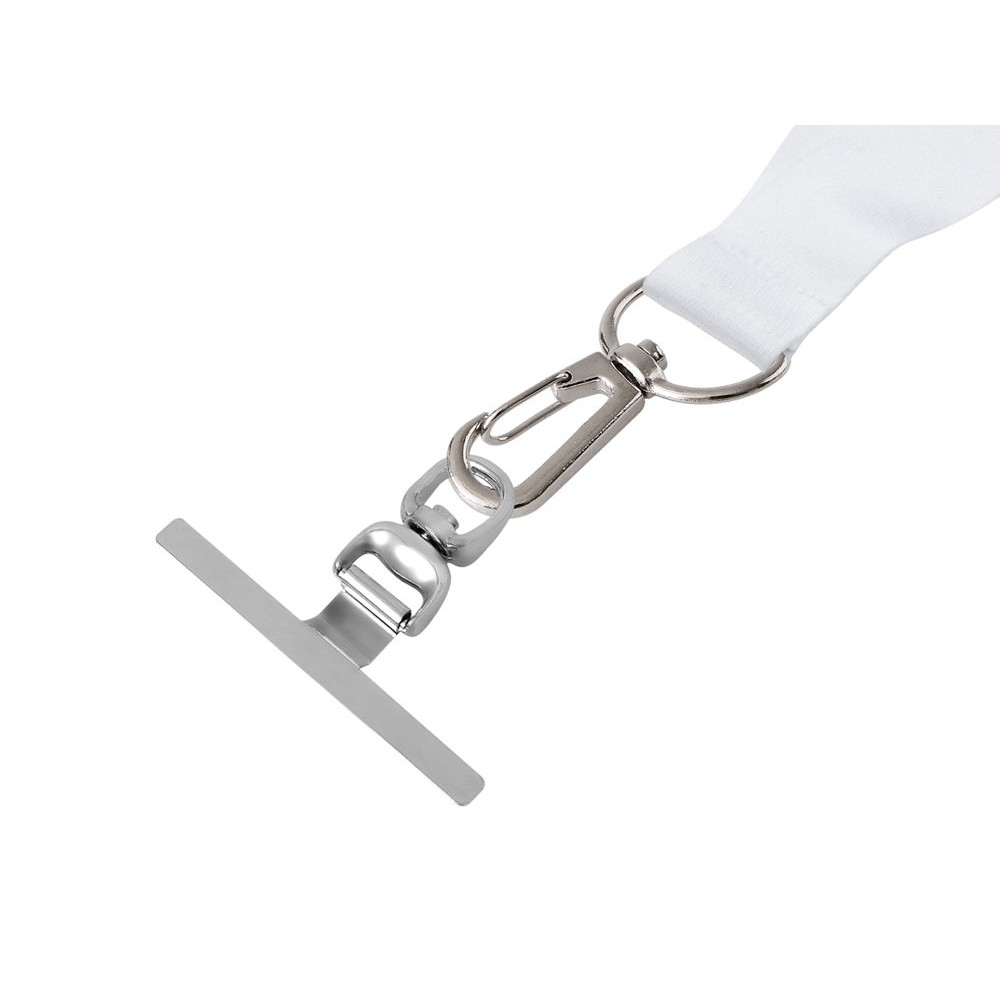 На складе Код товара: 828813 Ланъярд 2 см под сублимацию с трендовым карабином, замком обрыва и узким держателем для телефона из ПЭ, серебристый