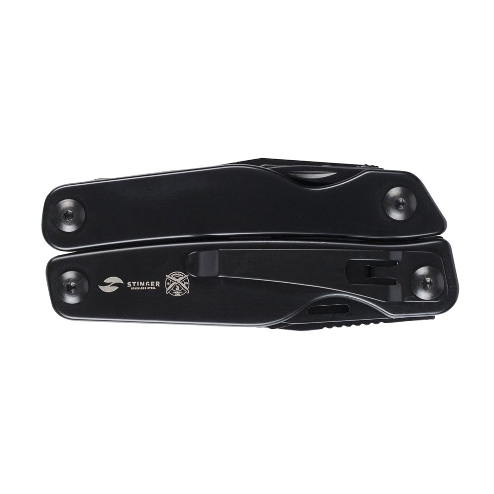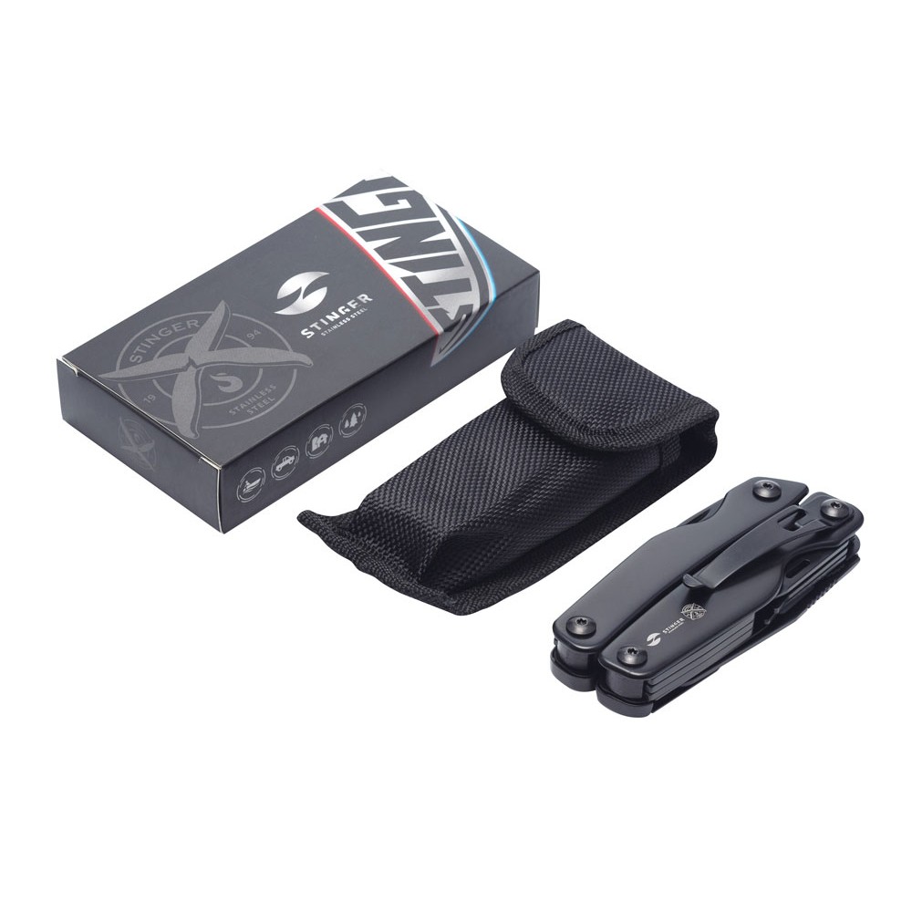 Мультитул Stinger, 100x40 мм, 11 функций, сталь, чёрный, в комплекте нейлоновый чехол