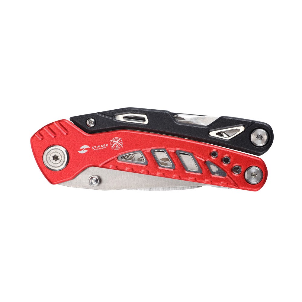 Мультитул Stinger, 105x30 мм, 11 функций, сталь/алюминий, красно-чёрный, в нейлоновом чехле