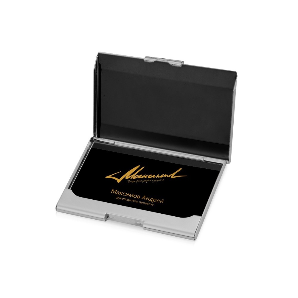 Визитница "Carlo" отлично подходит в качестве подарка или сувенира по любому поводу. Внутренняя сторона корпуса выполнена из искусственной кожи, которая обеспечивает дополнительную защиту визиток от истирания. На металлический корпус можно нанести гравировку по вашему эскизу.