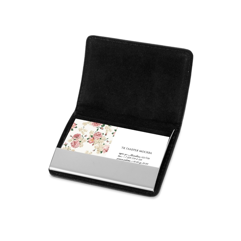 Лаконичный дизайн визитницы, выполненной из кожзама, нисколько не упрощает ее внешний вид, а, наоборот, дает хорошую возможность нанести фирменную символику или дарственную надпись на большой площади. На металлическую деталь визитницы также можно нанести изображение методом гравировки. Магнитный замок.
