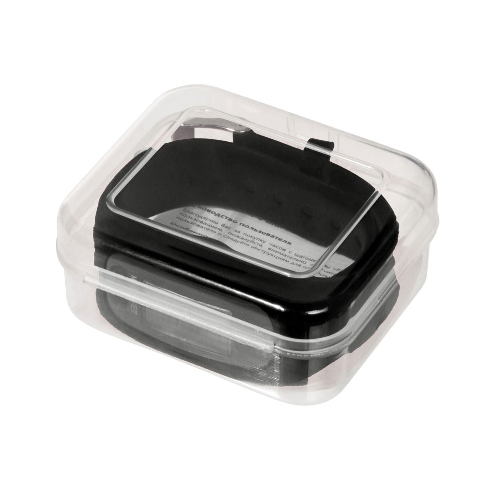 Наручные часы с возможностью отображения времени, калорий, шагов и дистанции. Есть переключение между метрической и британской системами измерений. На силиконовом ремешке можно сделать гравировку. Часы упакованы в пластиковую коробку, которую можно использовать для нанесения. Батарейка в комплекте.
