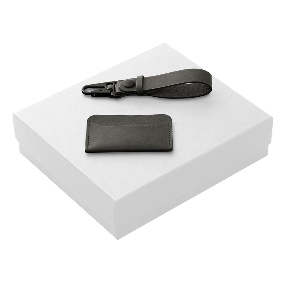 Подарочный набор Long River: картхолдер, ремешок для ключей (без лого Long River), черная коробка