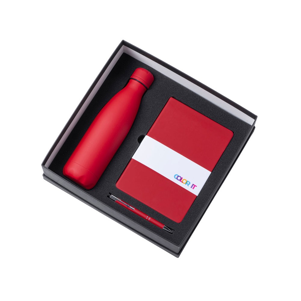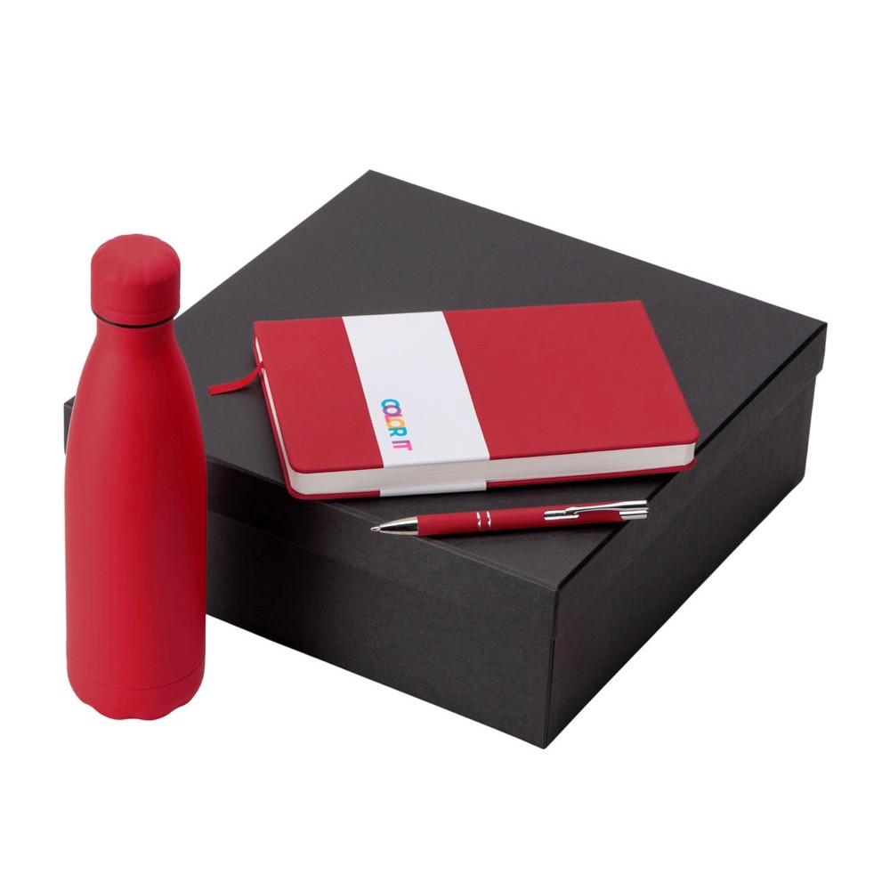 • Подарочный набор с блокнотом С3, металлической ручкой и термобутылкой, красный