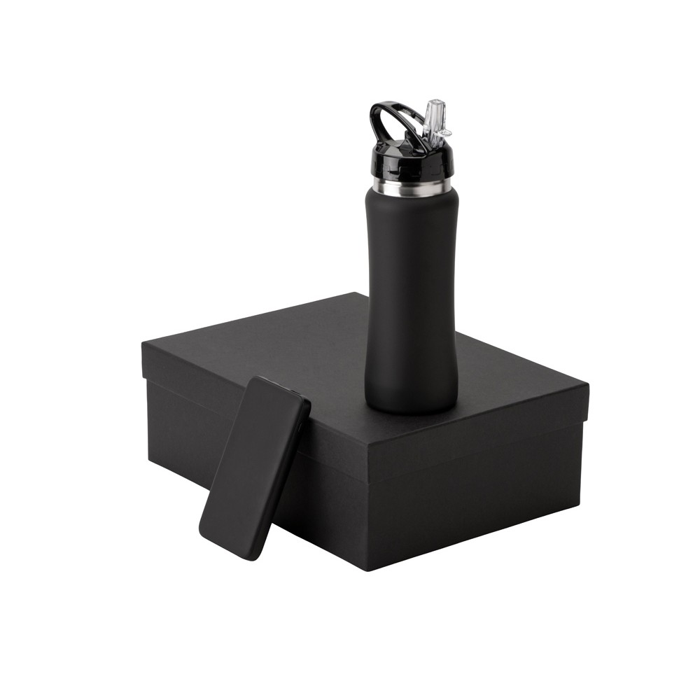 Подарочный набор с бутылкой для воды и повербанком С2, 10000 mAh, черный