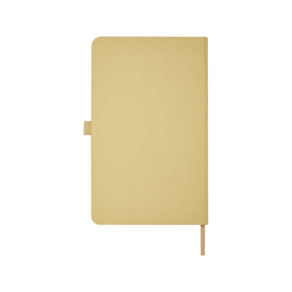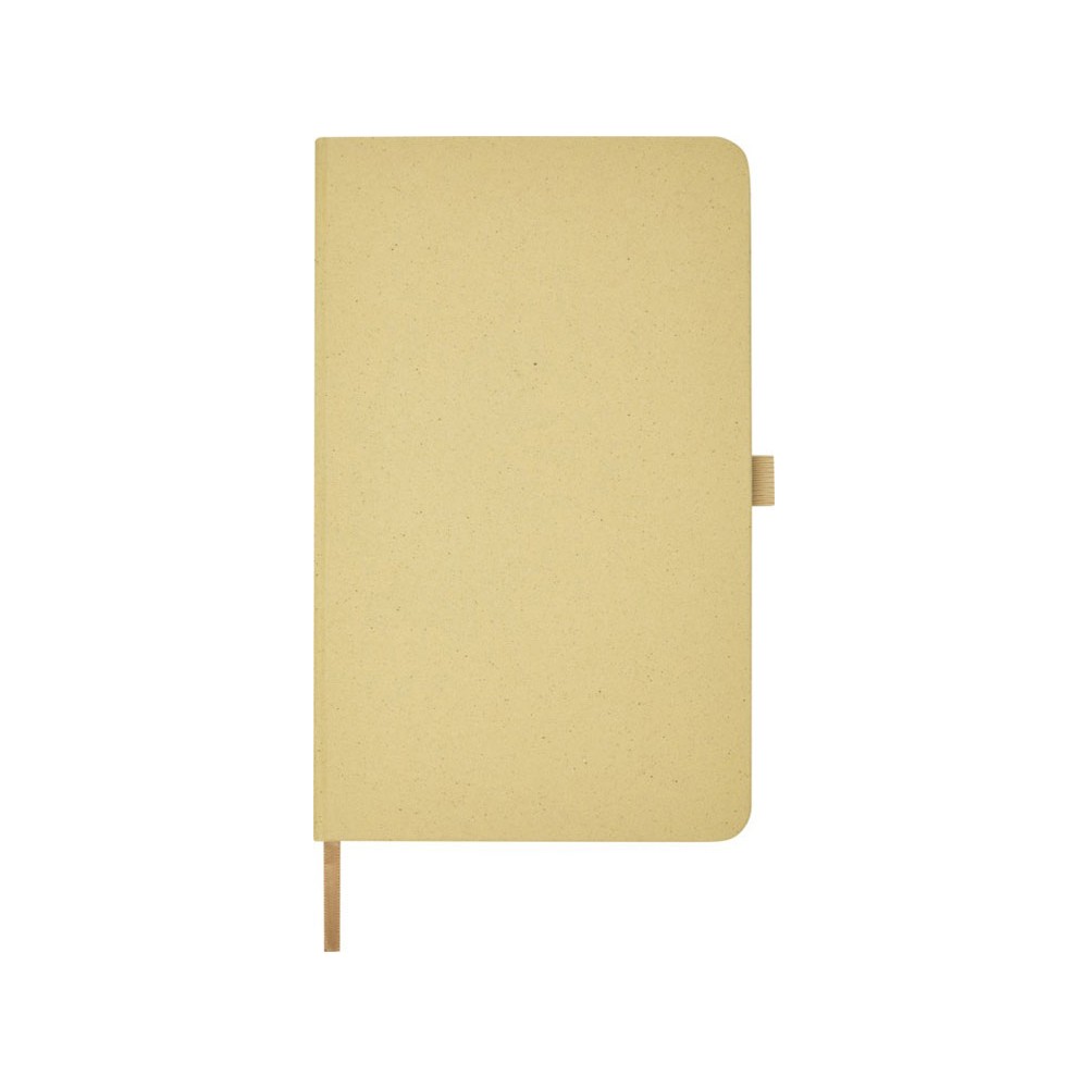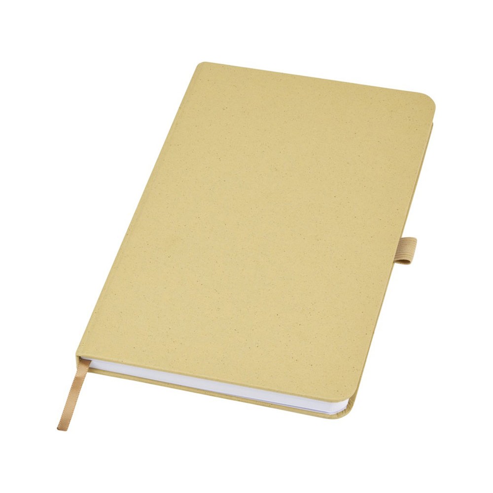 Легкий блокнот в твердой обложке для повседневных заметок с обложкой из материалов из ответственных источников. Коричневая обложка содержит остатки кофе, зеленая — остатки оливок, а белая — кукурузы. Имеет 80 листов (70 г/м²) из переработанной белой линованной бумаги.