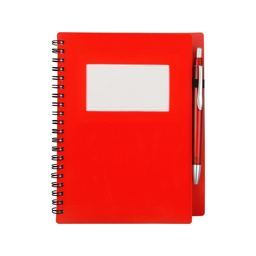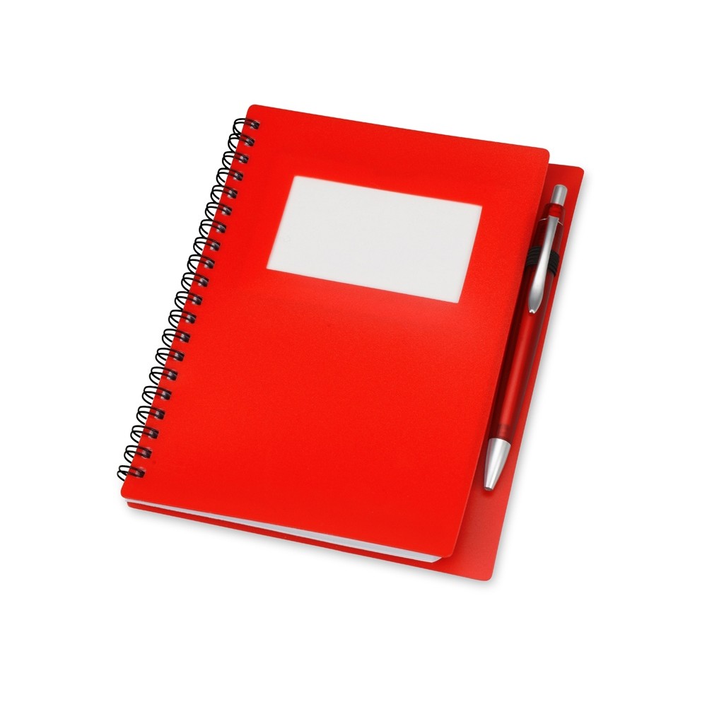 Блокнот «Контакт» в полипропиленовой обложке переплетен на пружине. В обложке блокнота предусмотрено окошко, в которое можно поместить визитную карточку или полиграфическую вставку. В комплекте с блокнотом идет ручка, которая вставляется в петельку сбоку.