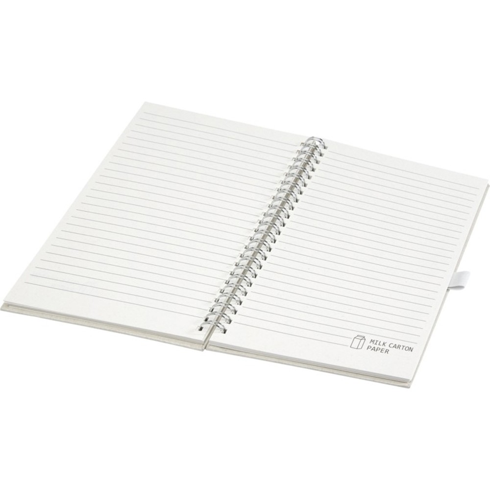Блокнот на спирали формата A5 для заметок с 70 линованными листами плотностью 80 г/м², изготовленный из переработанных картонных коробок из-под молока (до 70%). Картонные коробки из-под молока собираются, сортируются, перерабатываются и превращаются в бумагу, таким образом действительно превращая мусор во что-то полезное.